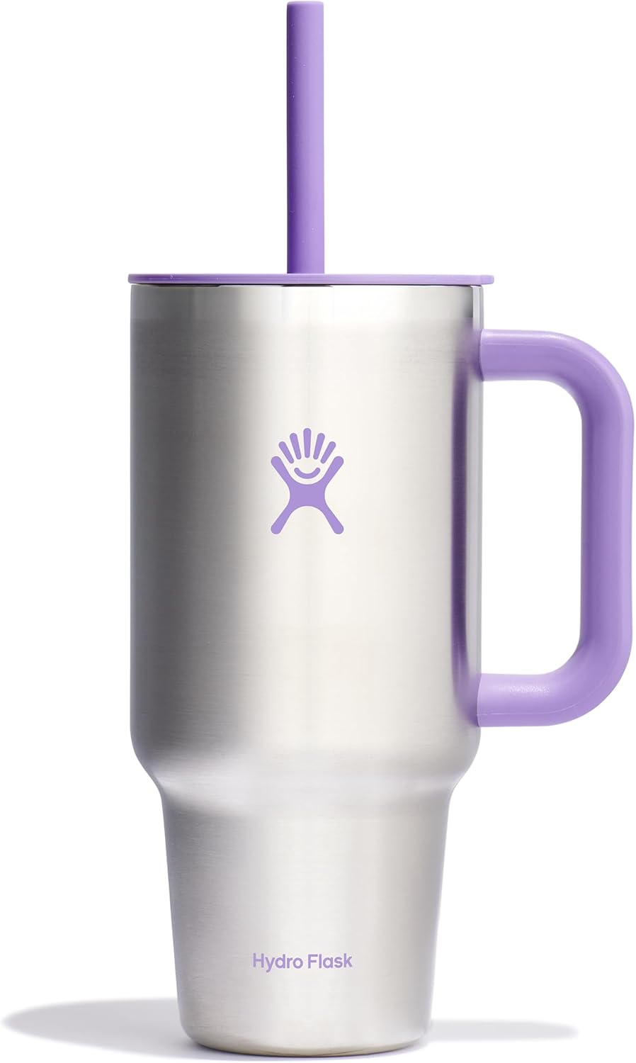 Hydro Flask Travel Tumbler with Handle, Lid and Straw - Insulated Stainless Steel in 32 Oz Stainless Steel Violet