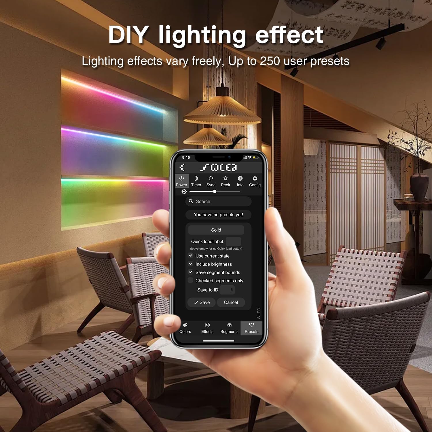 DIY Lighting: The ESP32 WLED light strip controller supports customized lighting effects. You can create unique lighting effects by adjusting color, brightness, speed, and other parameters, making your space more personalized