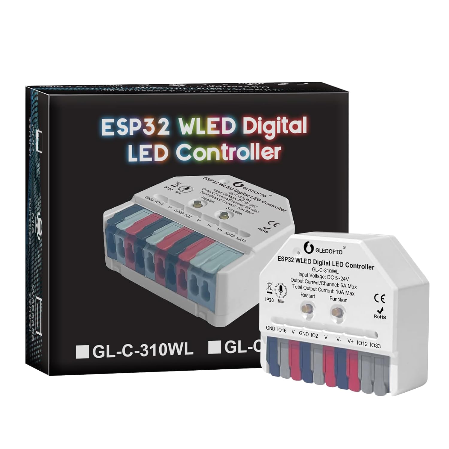 GLEDOPTO ESP32 Mini WLED LED Controller with Microphone DIY Music Dynamic Modes DC 5~24V Work with Addressable Digital RGB IC WS2811 WS2812 SK6812 TM1814 WS2813 WS2815 Strip Light Easy Wiring