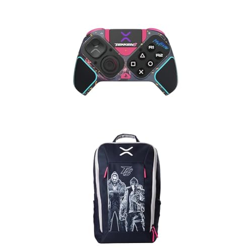 PDP Victrix Bundle: Pro BFG Wireless PlayStation Controller for PS5/PS4/PC and Victrix Tournament Backpack (Tekken 8 - Rage Art). Compatible with PS5® & PS4® and Windows 10/11 PCs, the special TEKKEN 8 – Rage Art Victrix Pro BFG Wireless Controller is loaded with customization options to fit gamers’ individual play styles, from esports competitions to everyday matches. The Victrix Pro BFG Wireless Controller’s winning set of features include: • Lag-free wireless play via the included USB dongle and even faster inputs via cable • Custom configuration with reversible left module, standard right module, six button fight pad module, four interchangeable sticks, three different D-pads, and four gates • Patented Clutch Triggers with five trigger stops and hair trigger mode, and four mappable back buttons for faster reactions • Access the Victrix Control Hub app on PC and enable even more customization, from remapping buttons and reconfiguring triggers to adjusting deadzones • A PlayStation® Official Licensed Product Designed for style, comfort, and gamers’ unique traveling needs, the TEKKEN 8 Victrix Tournament Backpack fits a controller, fight stick, and all the gaming gear. The backpack features a large, padded pocket; an internal, self-fastening headset strap; seven zipper compartments; and breathable, padded straps. Officially licensed by Bandai Namco Entertainment and Sony for PlayStation.