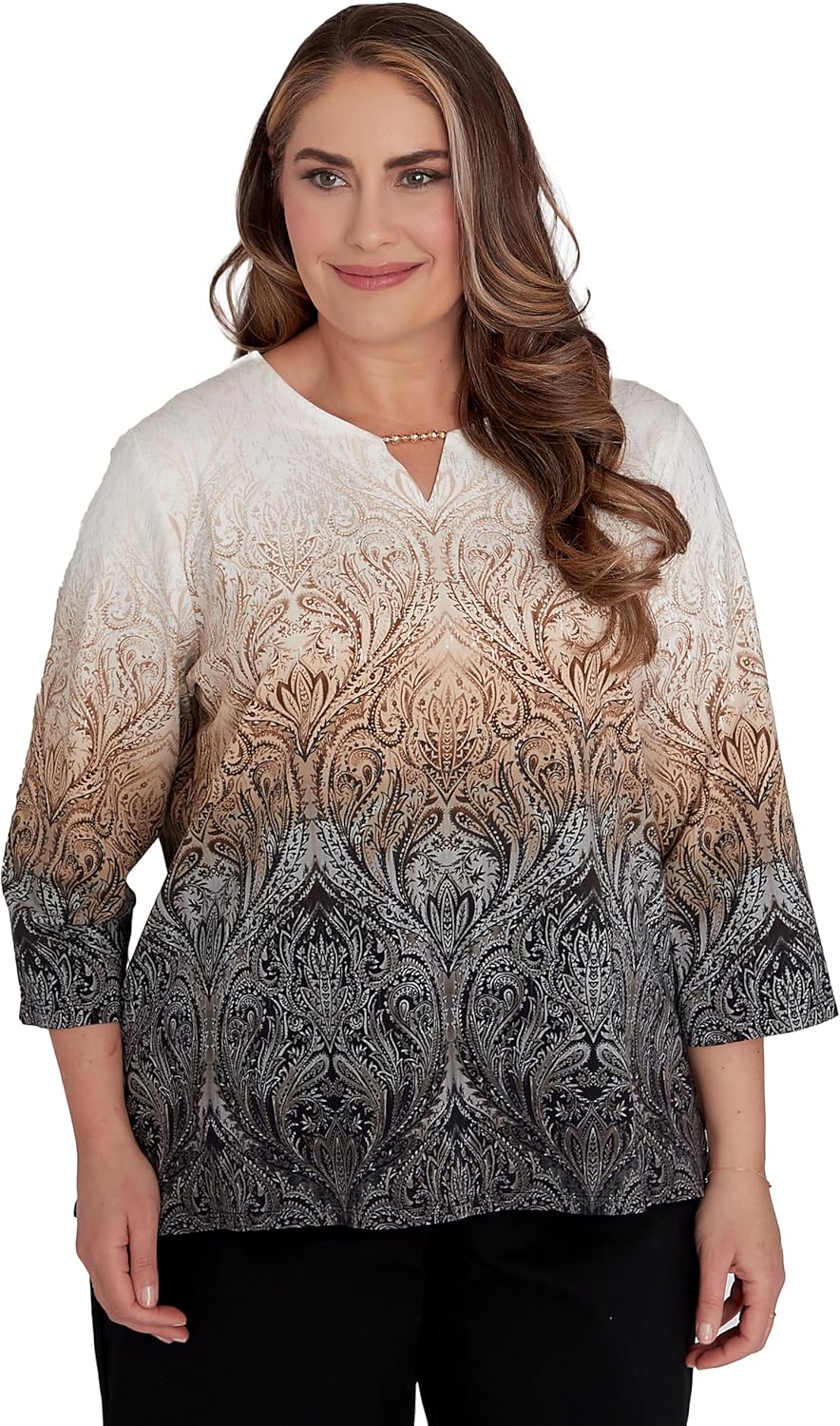 Alfred Dunner Women's Classics Ombre Medallion Top