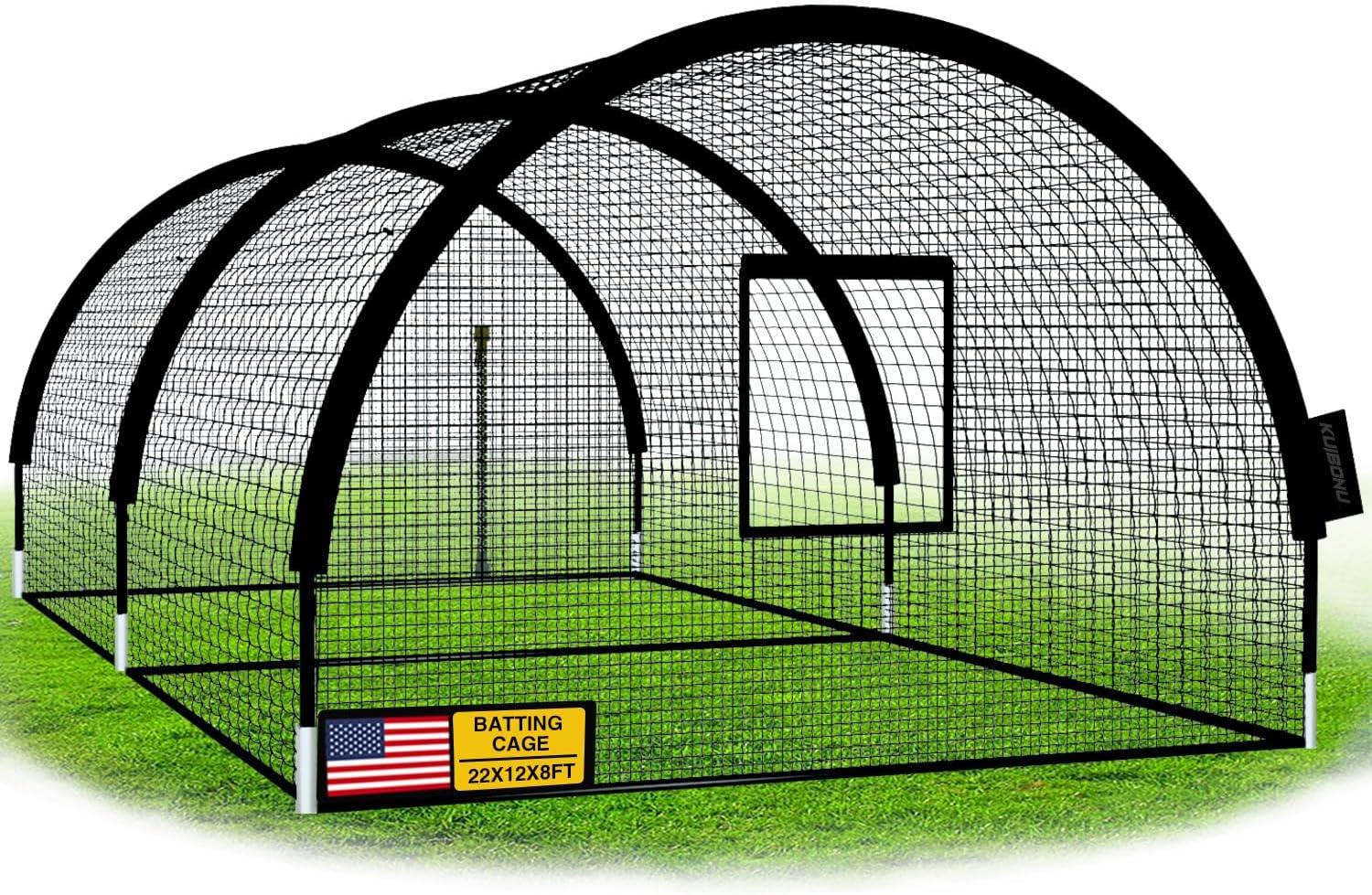 ⚾️Perfect for Machine and Manual Throw: 22x12x8 ft baseball batting cage net have plenty of space to simulate real-competition batting scenarios. Unique zipper door with 4" x 4" pitching hole to practice with pitching machine or pitcher.