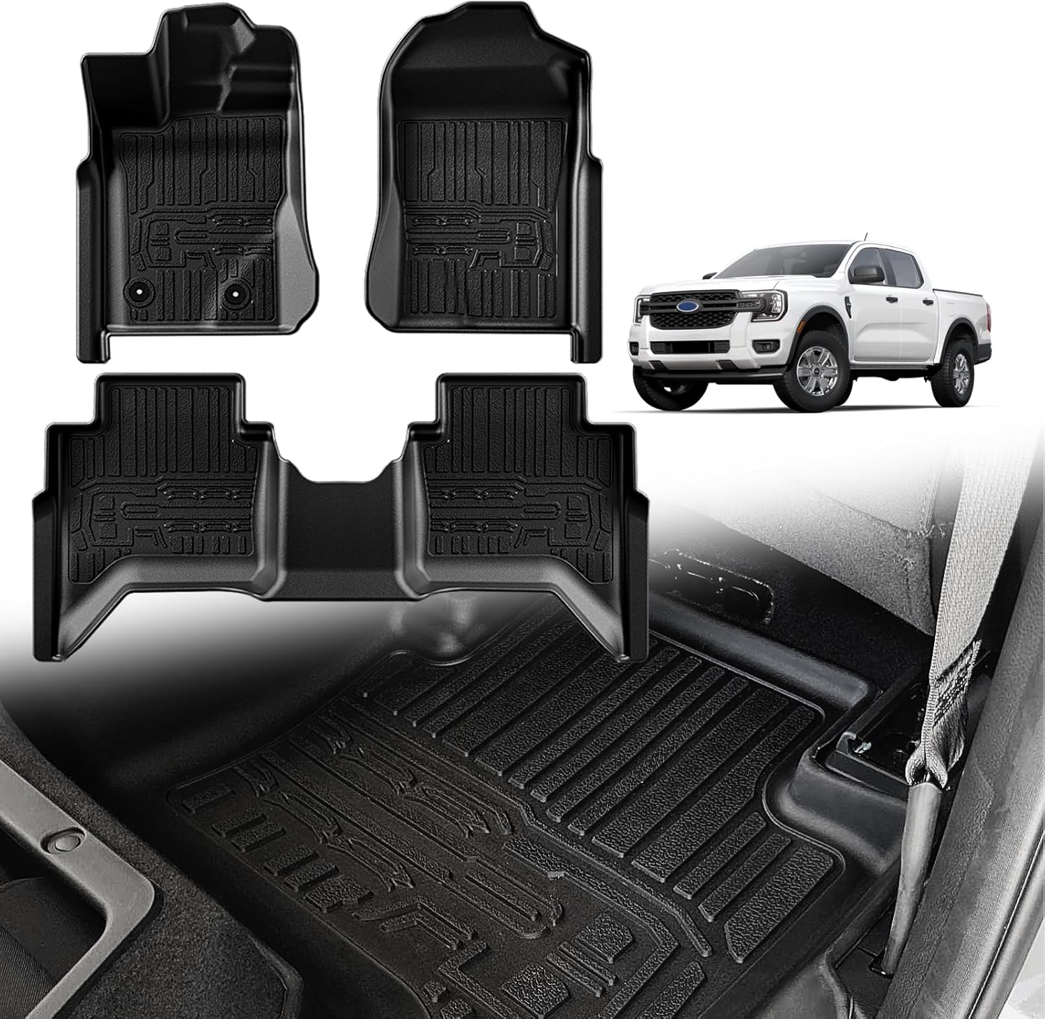 Perfect Fitment: Triplealines for 2024-2025 Ford Ranger SuperCrew Floor Mats are designed according to the 3D laser scan data to make sure it fits your Ranger perfectly. (Package includes 1st & 2nd row floor mats)