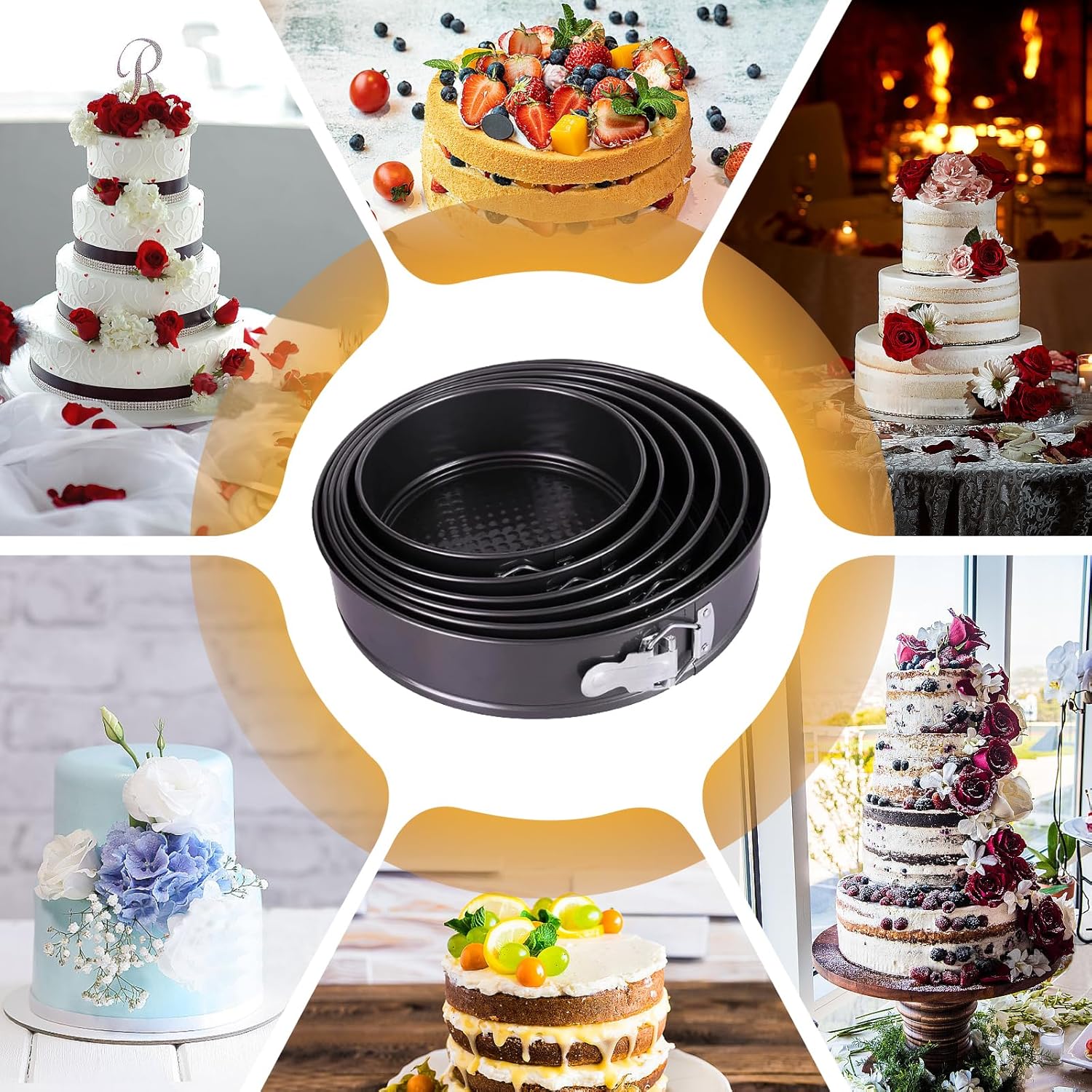 6 DIFFERENT SIZES: This set of Springform Cake Pan includes 6 different sizes, the 12-inch cake pan is suitable for making large cakes for family celebrations, while there are also 7-inch, 8-inch, 9-inch, 10-inch, and 11-inch springform cake pans available for different occasions, from small single-layer cakes to large multi-layer cakes.