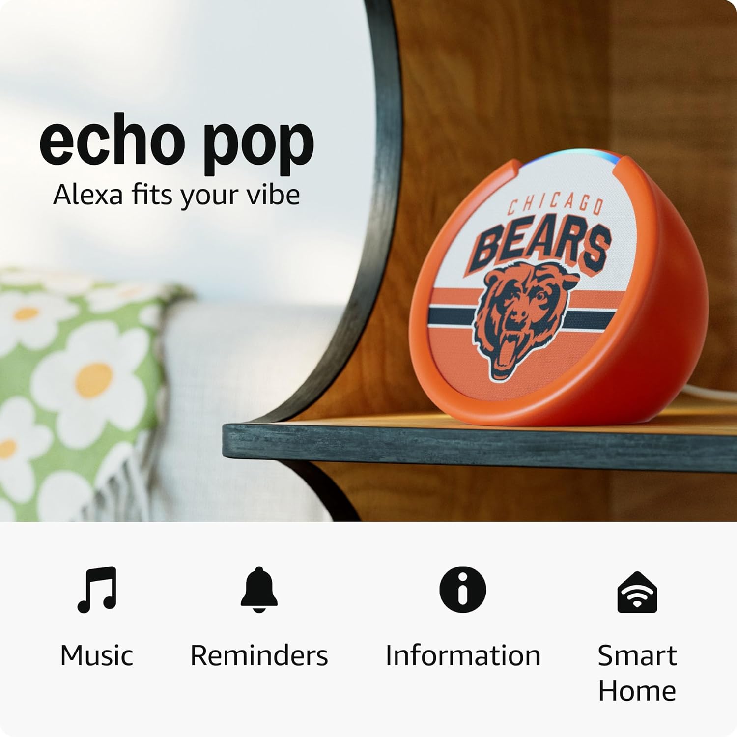Amazon Echo Pop (newest model) | Officially Licensed NFL Limited-Edition | Chicago Bears ('25-26 Season Design)
