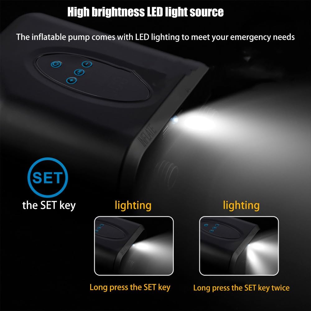 LED Lighting: High brightness LED light source. The inflatable pump comes with LED lighting to meet your emergency needs. No panic in emergencies, no inflation problems at night.