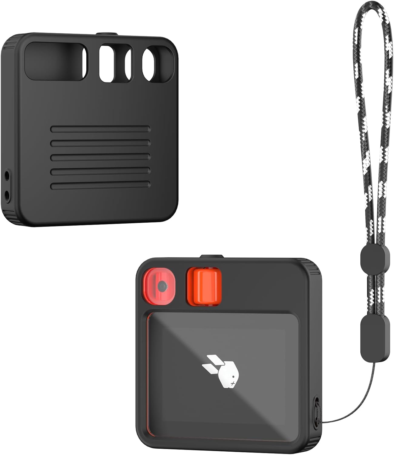 Silicone Protective Case for Rabbit R1 AI Device, Rabbit R1 Protective Cover Kit with Lanyard,Anti-Scratch Shock Resistant Case Cover Compatible Rabbit R1 AI (Black)