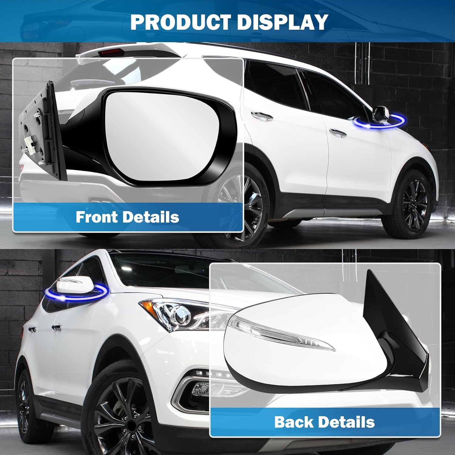 Compatibility: This left driver side mirror specially designed for 2013 2014 2015 2016 2017 2018 Hyundai santa Fe Sport