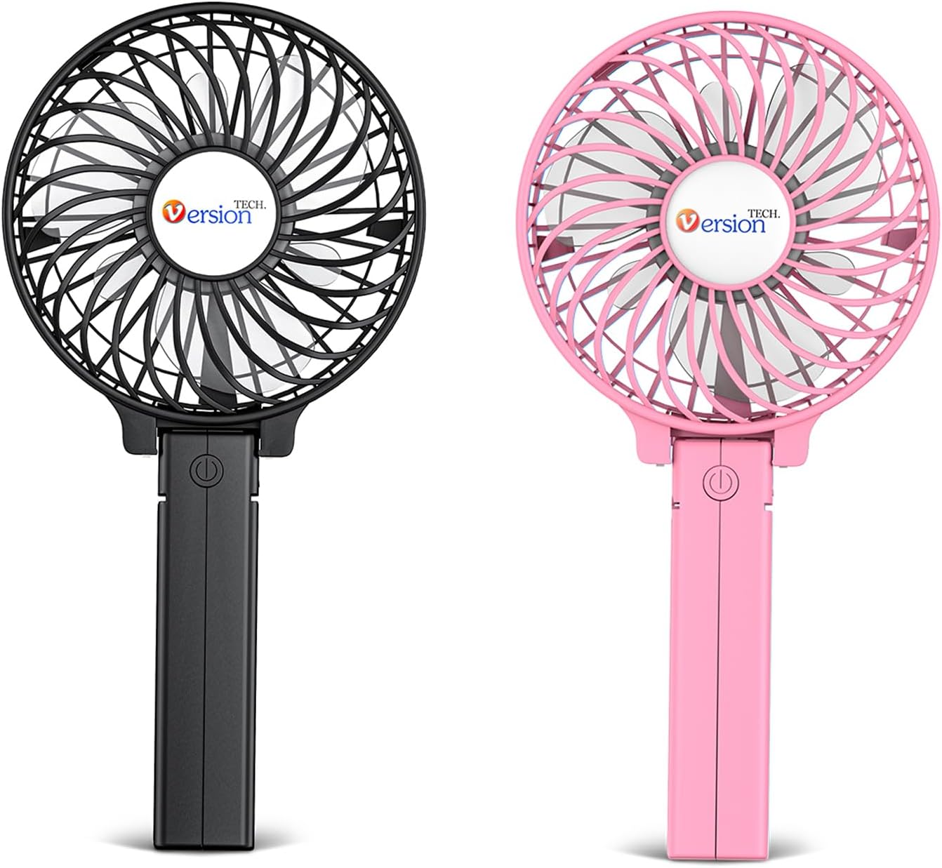 VersionTECH. Portable Handheld Fan 2Pack, Black+Pink Powerful 180° Foldable Rechargeable Clip Fan with 3 Speeds