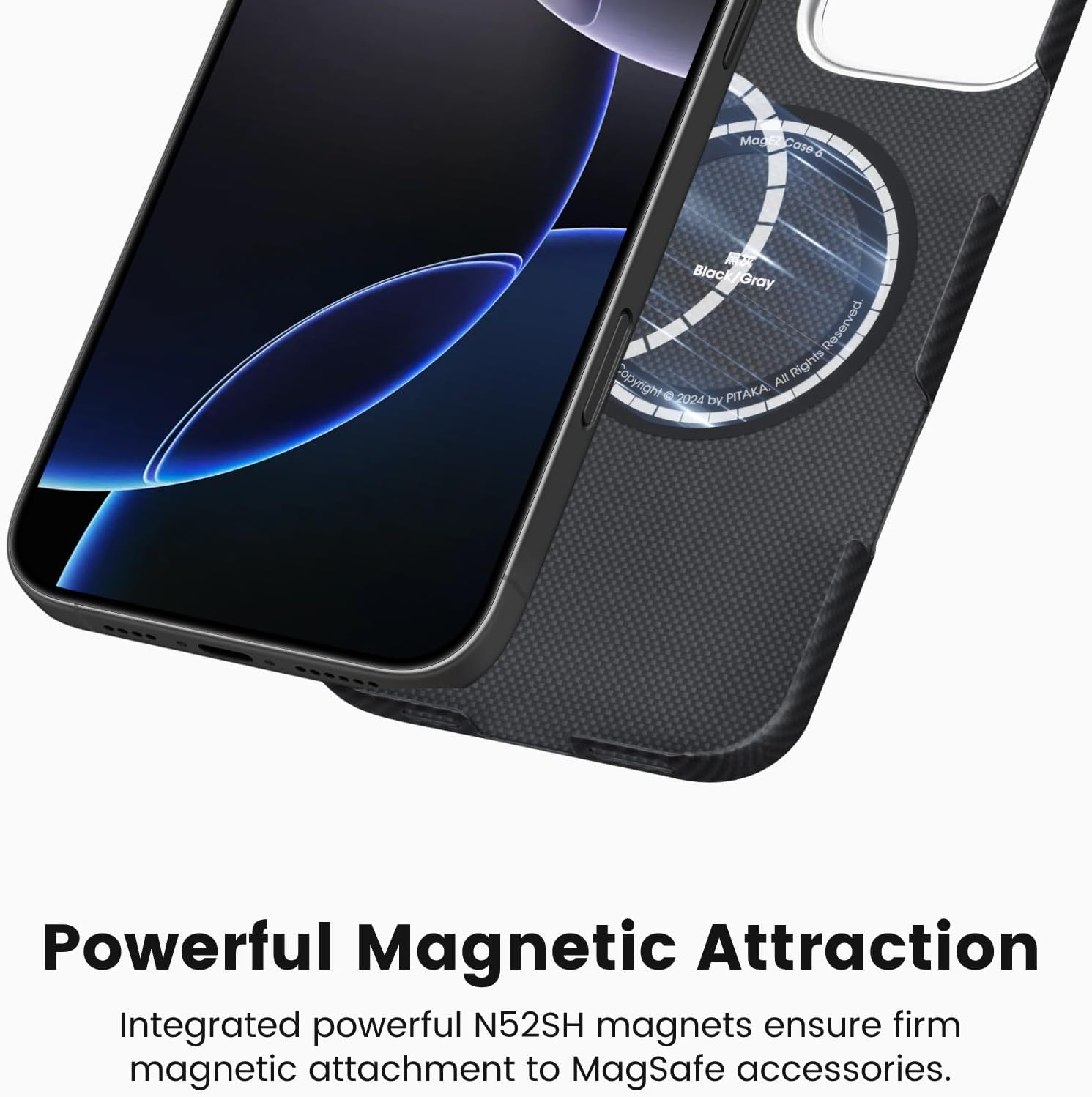 [Fully Compatible with MagSafe] Fully compatible with MagSafe chargers and accessories and PITAKA MagEZ Car Mount Pro, MagEZ Slider, MagEZ Grip, etc. Due to MagSafe SlimBoard technology, the case for iPhone 16 Pro offers the same wireless charging speed as without a case.