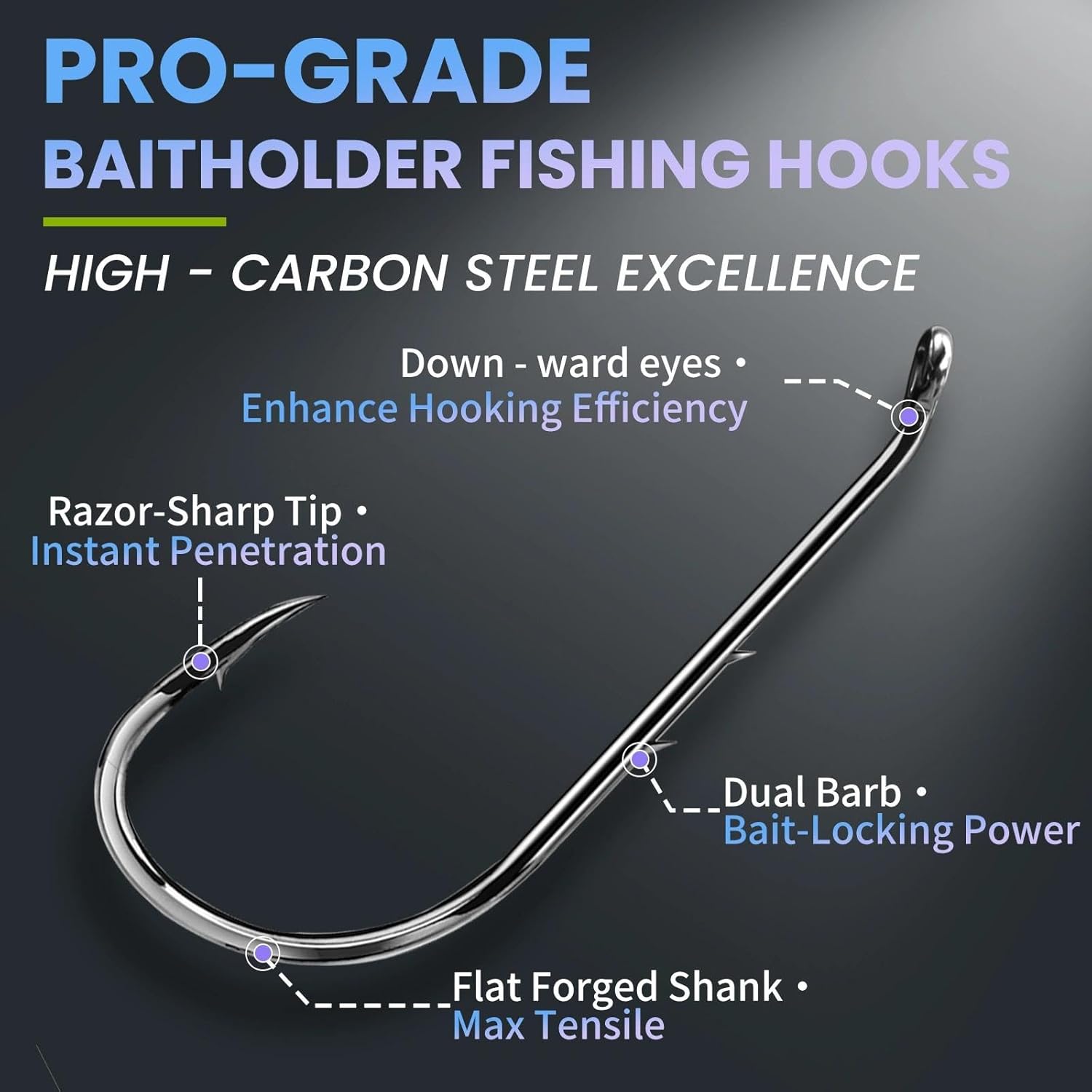 [Sharp and Durable]Natufish Baitholder hooks are made of high-carbon steel,which has higher strength and better corrosion resistance to extend service life.At the same time,the beak hook design provides excellent hook force and grip,which can better penetrate the fish's mouth and reduce the fish escape rate.