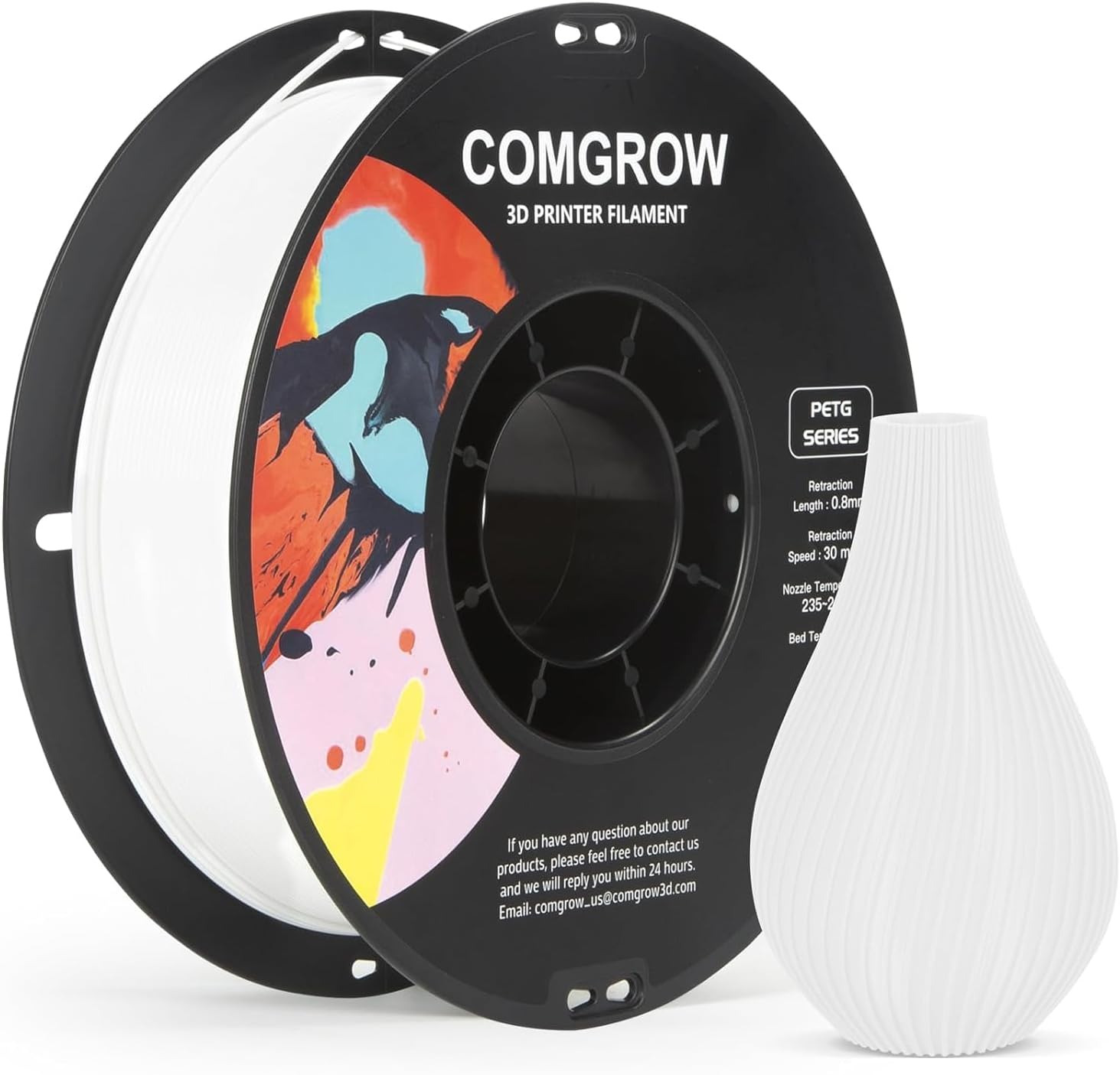 Comgrow PETG 3D Printer Filament 1.75mm, High Precision and Tough 3D Printer Filament (2LBS), Dimensional Accuracy +/- 0.02 mm, Fit Most 3D Printers White