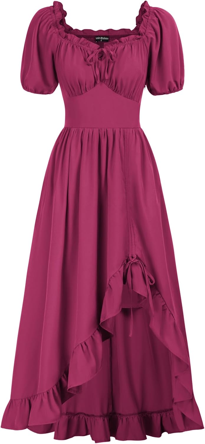 Scarlet Darkness Renaissance Dress Women Cottagecore Corset Dress Ruffle Maxi Dress with Pockets