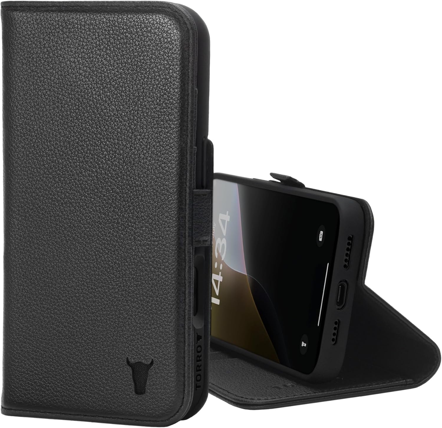 TORRO Premium Leather Case Compatible with iPhone 16 Pro Max 6.9" – Genuine Leather Wallet Flip Folio Case with Kickstand and Card Slots (Compatible with Official MagSafe Chargers) - Black