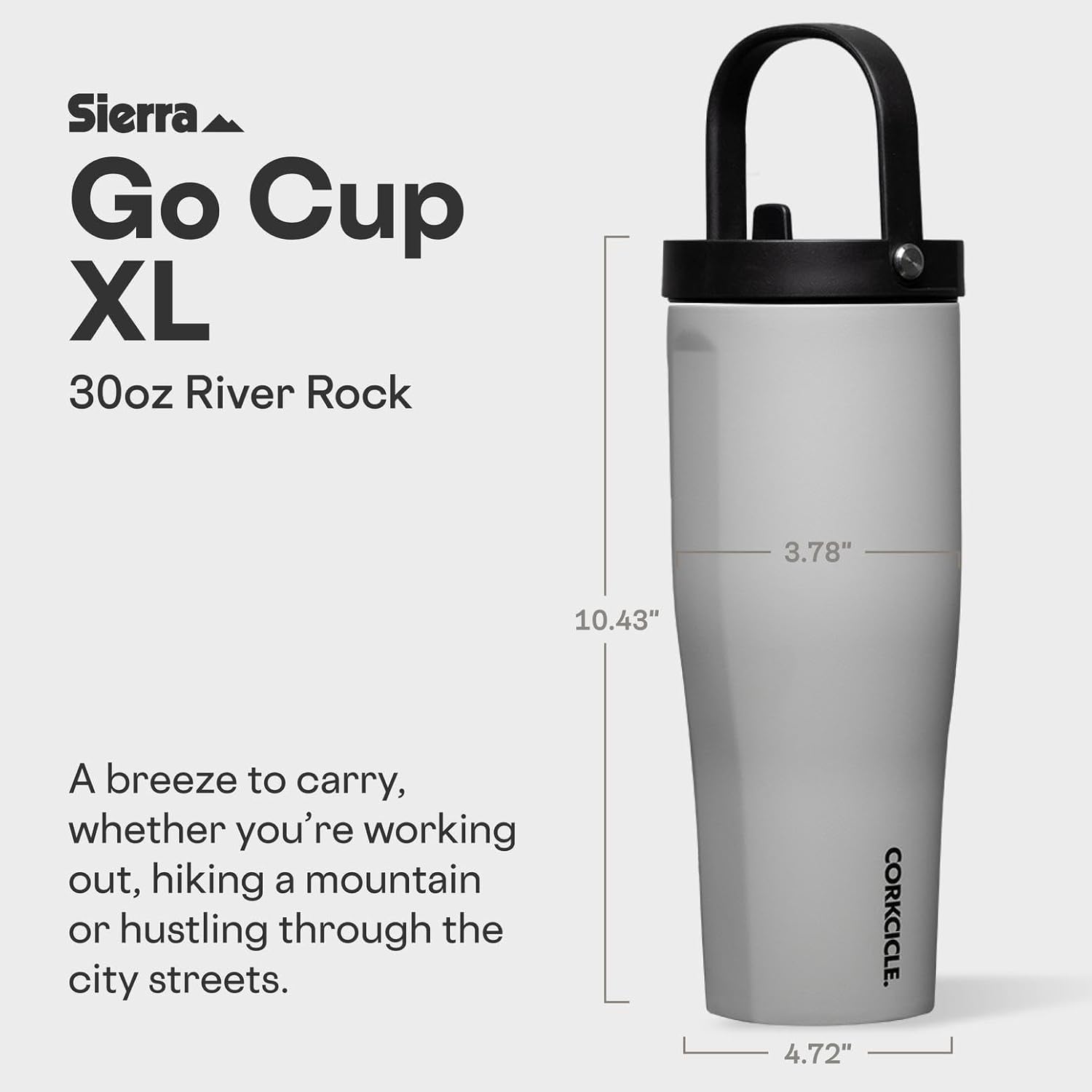 Corkcicle Go Cup XL - Leak-Proof Travel Tumbler - Triple Insulated Stainless Steel Water Bottle - Easy-Carry Handle - Summer Drinkware Gift - Keeps Drinks Ice Cold - 30 oz - River Rock