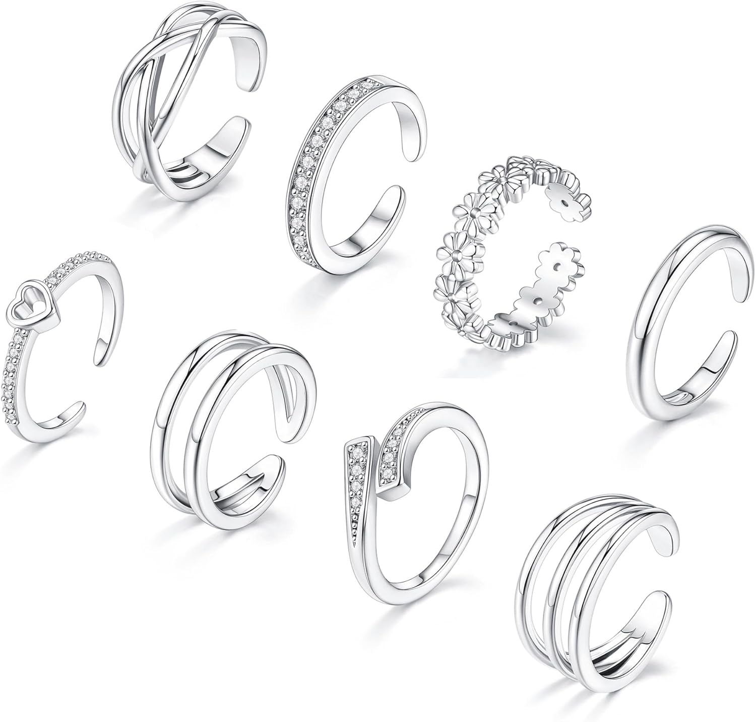 SAMOCO 8 Pcs Toe Rings for Women Toe Ring Non Tarnish Simple Open Adjustable Band Toe Rings Set Beach Foot Toe Ring for Summer