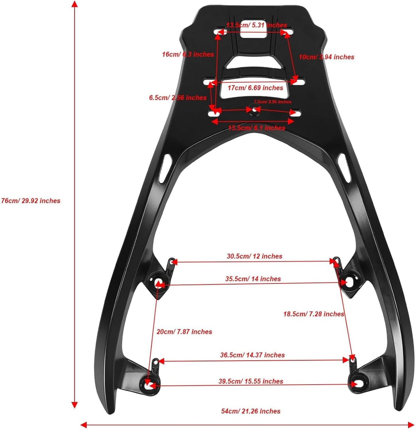 【Unlock more Space】: The rear luggage bracket has good expansion adaptability, heavy duty, provide luggage rack support frame to get more storage space to carry more items when riding. The versatile flat loading surface can also improve the appearance of the motorcycle.