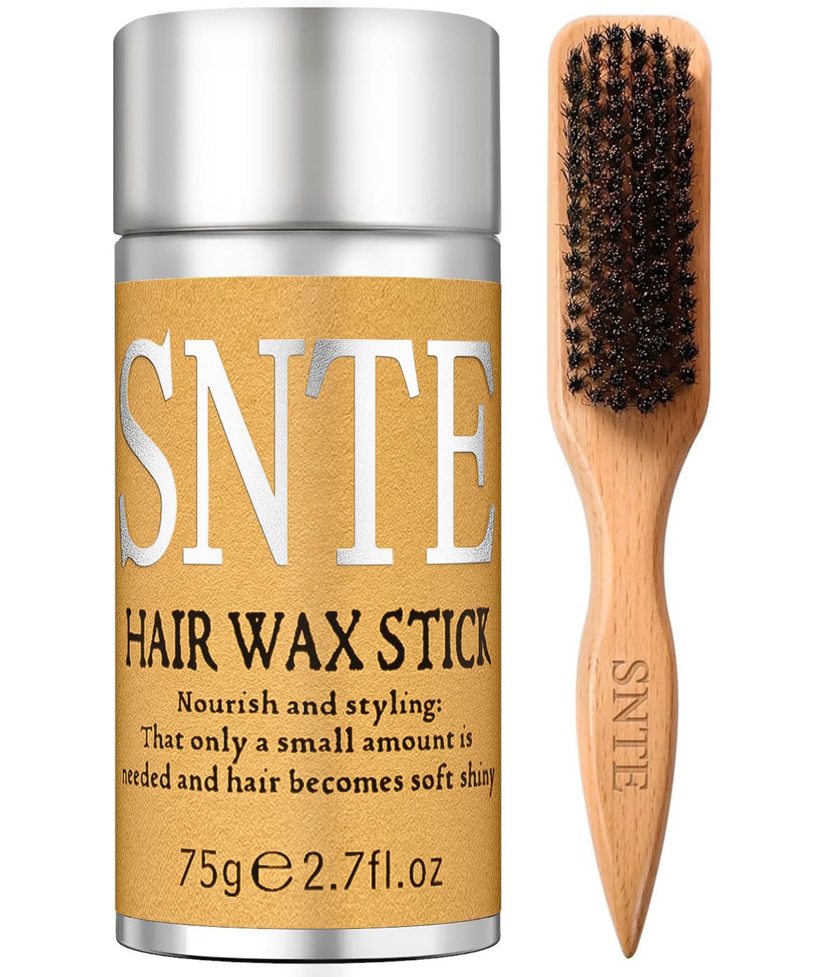 Slick Back Hair Brush, Hair Wax Stick Set - Boar Bristle Brush for Fine to Medium Hairs - Smooth Flyaways, Frizz & Baby Hairs, Sleek Ponytails Buns Updos