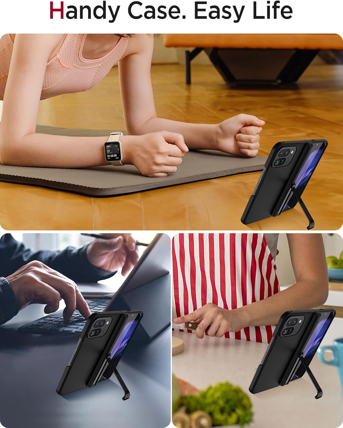 【Precise Cutouts & Wireless Charging】The Cases for Pixel 9 Pro Fold with Metal Stand features Precise Cutouts that provide seamless access to all ports and buttons, ensuring the device's functionality is fully accessible. Additionally, Pixel Pro 9 Fold Slim Case is designed to be fully compatible with Wireless Charging, allowing you to charge your phone effortlessly without having to remove the Pixel 10 Pro Fold Cases, maintaining both convenience and continuous protection.