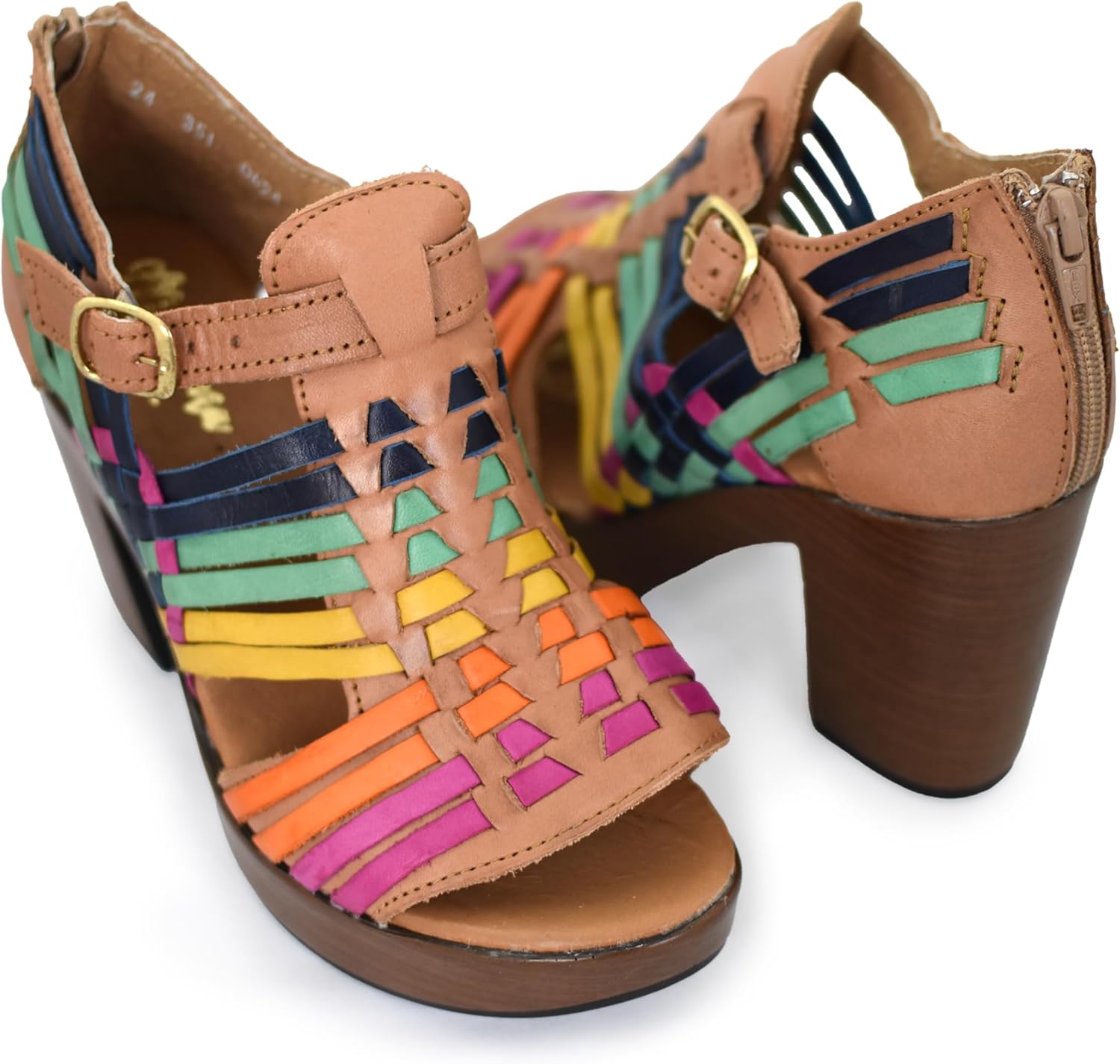 Macarena Collection Womens Shoes Leather Sandals for Women Huarache | Handmade Mexican Sandals Women | Comfortable & Stylish Womens Sandals 351 Multicolors