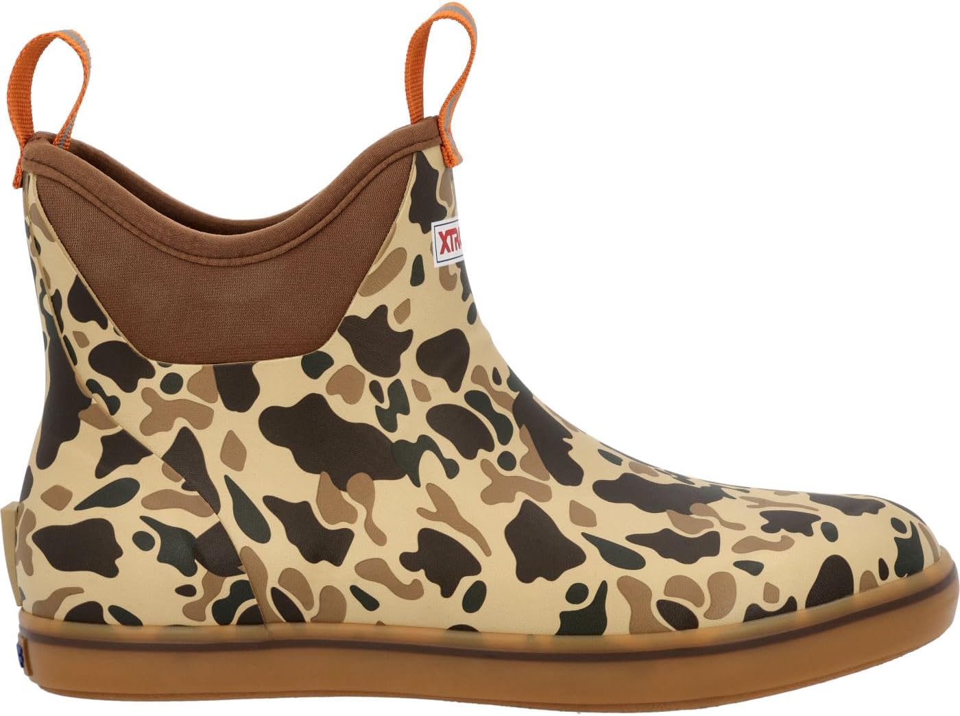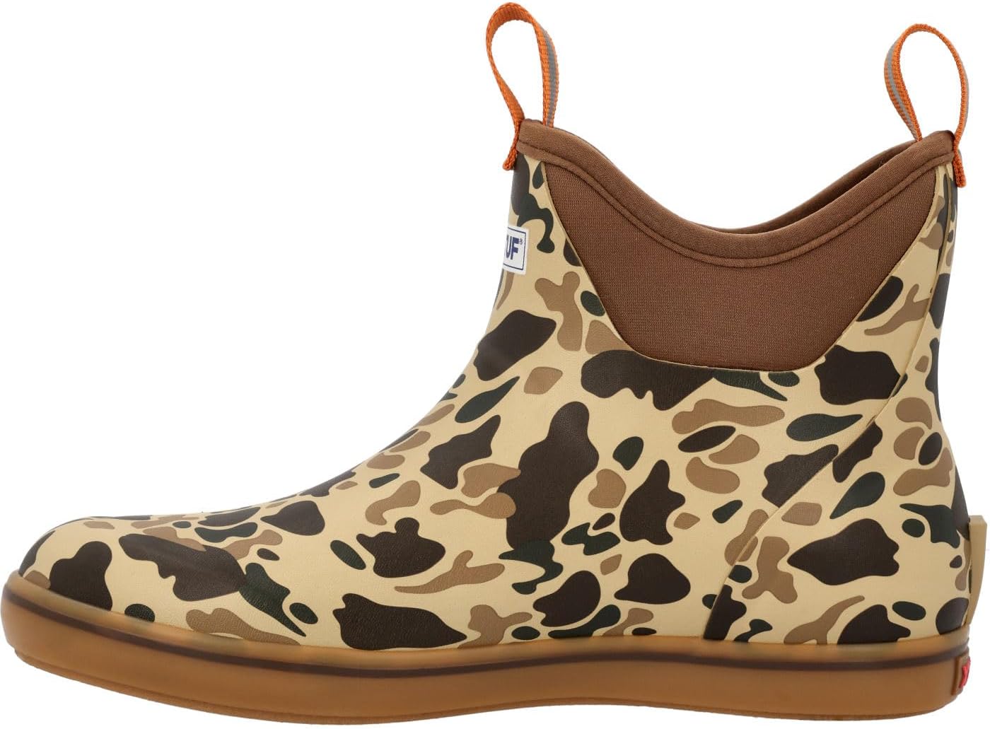p>The Ankle Deck Boot collection, by XTRATUF, has a lightweight design with the same slip-resisting Chevron outsole found on the Legacy boot collection. These waterproof 6-inch women's boot, in duck camo, has pull-tabs for placement. Inside the boots have an XPRESSCOOL cooling liner that keeps feet comfortable in both cool and warm environments. An SRA-rated, slip-resisting outsole composed of an an exclusive rubber compound grips the floor surface, providing sure footing. This boot is constructed with hand-layered rubber, and so not classified as an XTRATUF commercial grade boot. For those looking for a commercial grade ankle height deck boot please search for the XTRATUF Wheelhouse Boot.