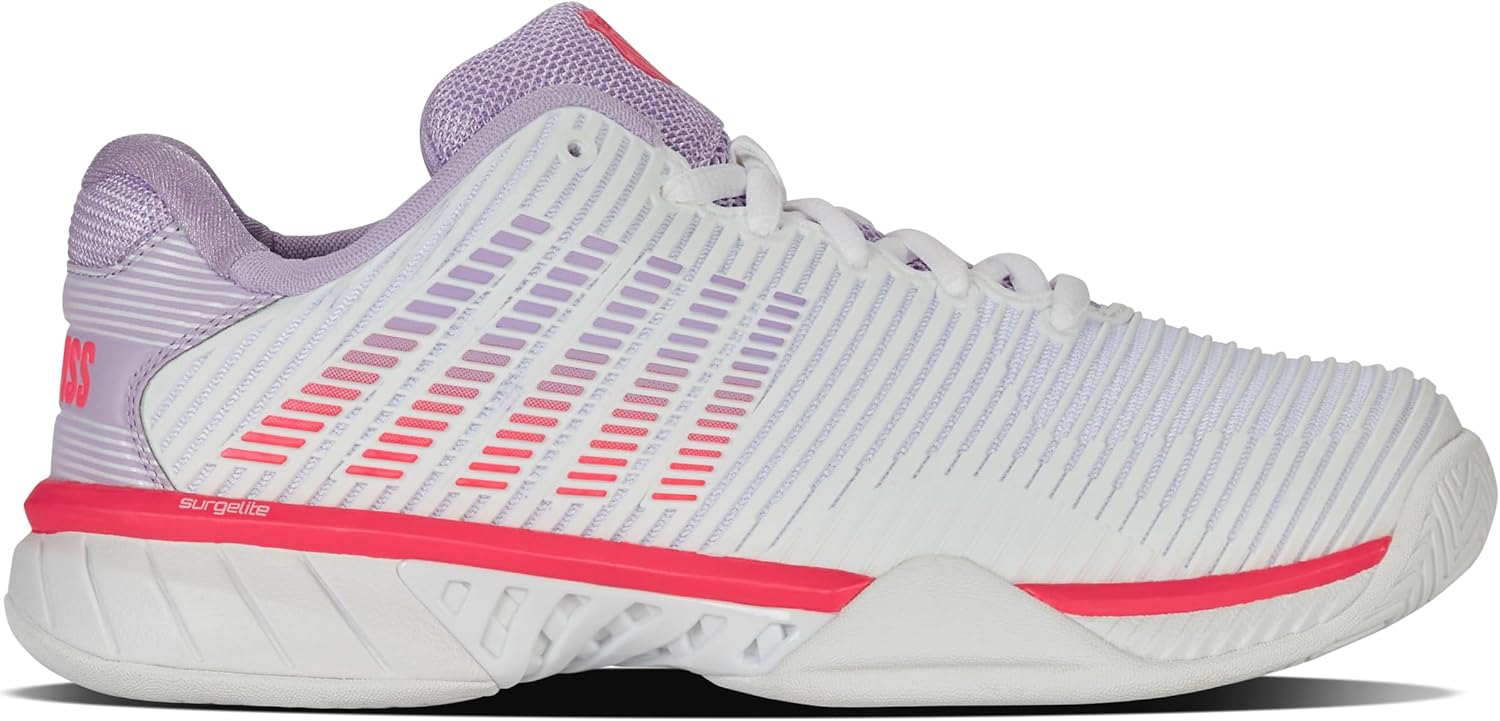 K-Swiss Women's Hypercourt Express 2 Tennis Shoe (White/Orchid Petal/Neon Blaze),7 M