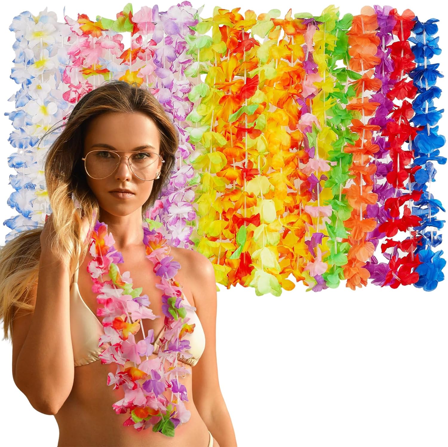 Hawaiian Leis Decorations(24pcs),Leis for Luau Party Decor,Tropical Hawaiian Bulk Hula Dance Party Decor,Colorful Flower Necklace Summer Beach Pool Birthday Theme Party Favors Supplies