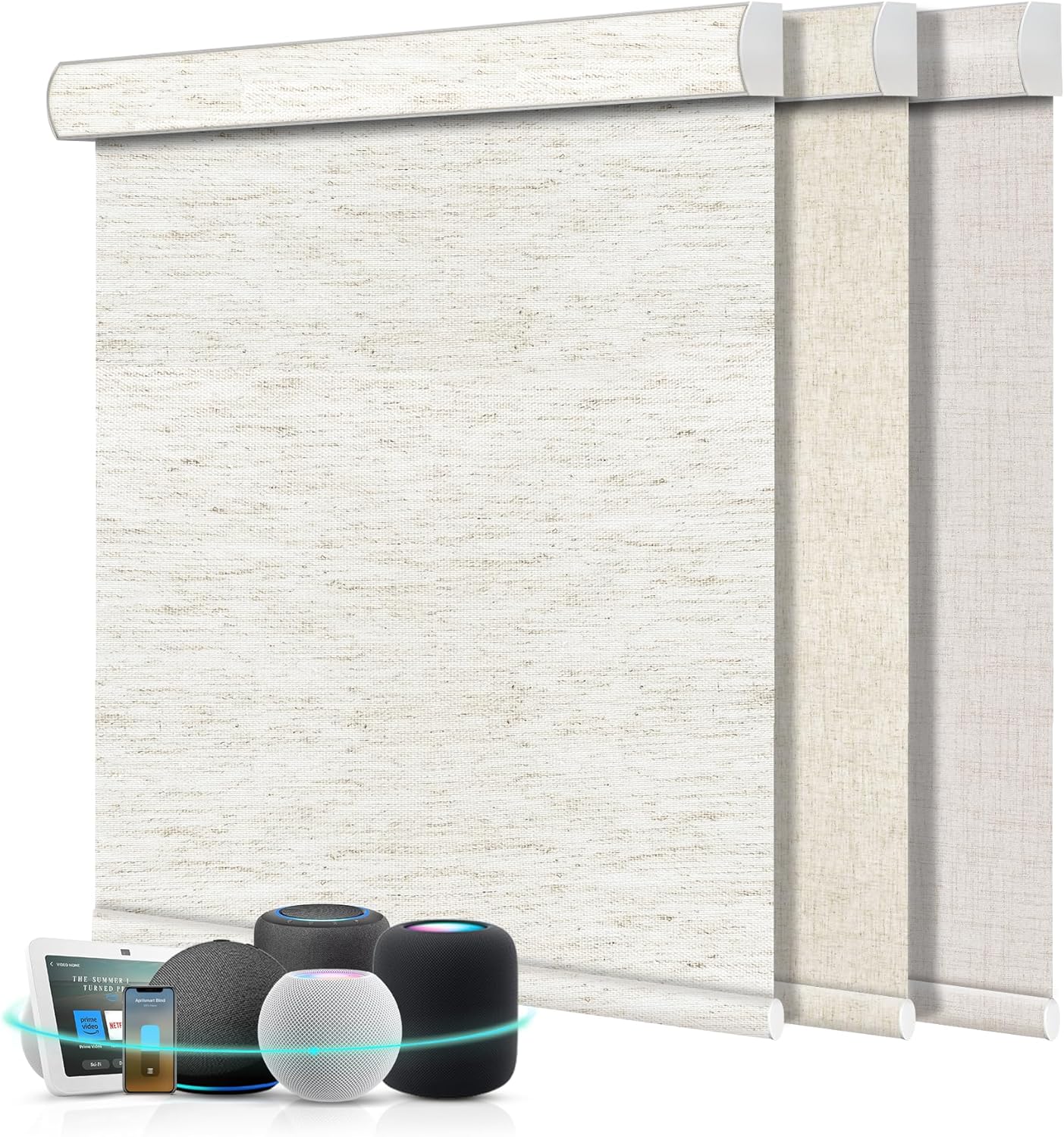 Aprilsmart Motorized Blinds with Remote,100% Blackout Smart Blinds Compatible with Apple HomeKit Alexa Google Home- Voice and app Control,Motorized Roller Shades Custom Size (Linen White-02)