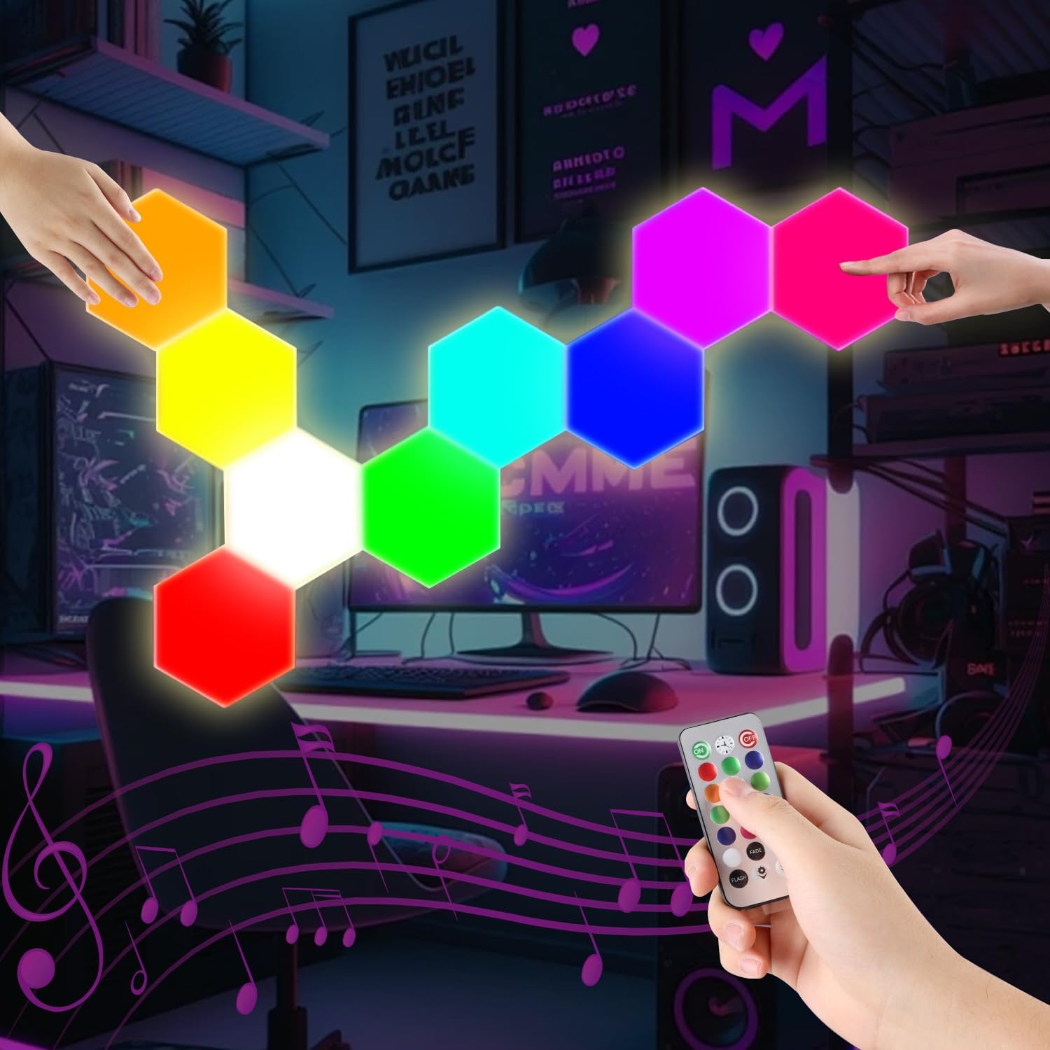 10 Pack Hexagon Light Panels - Smart RGB Hexagon LED Lights Wall Lights Remote Control Lights for Lving Room, Bedrooms, DIY Lovers, Gifts, Gaming Room, Kids