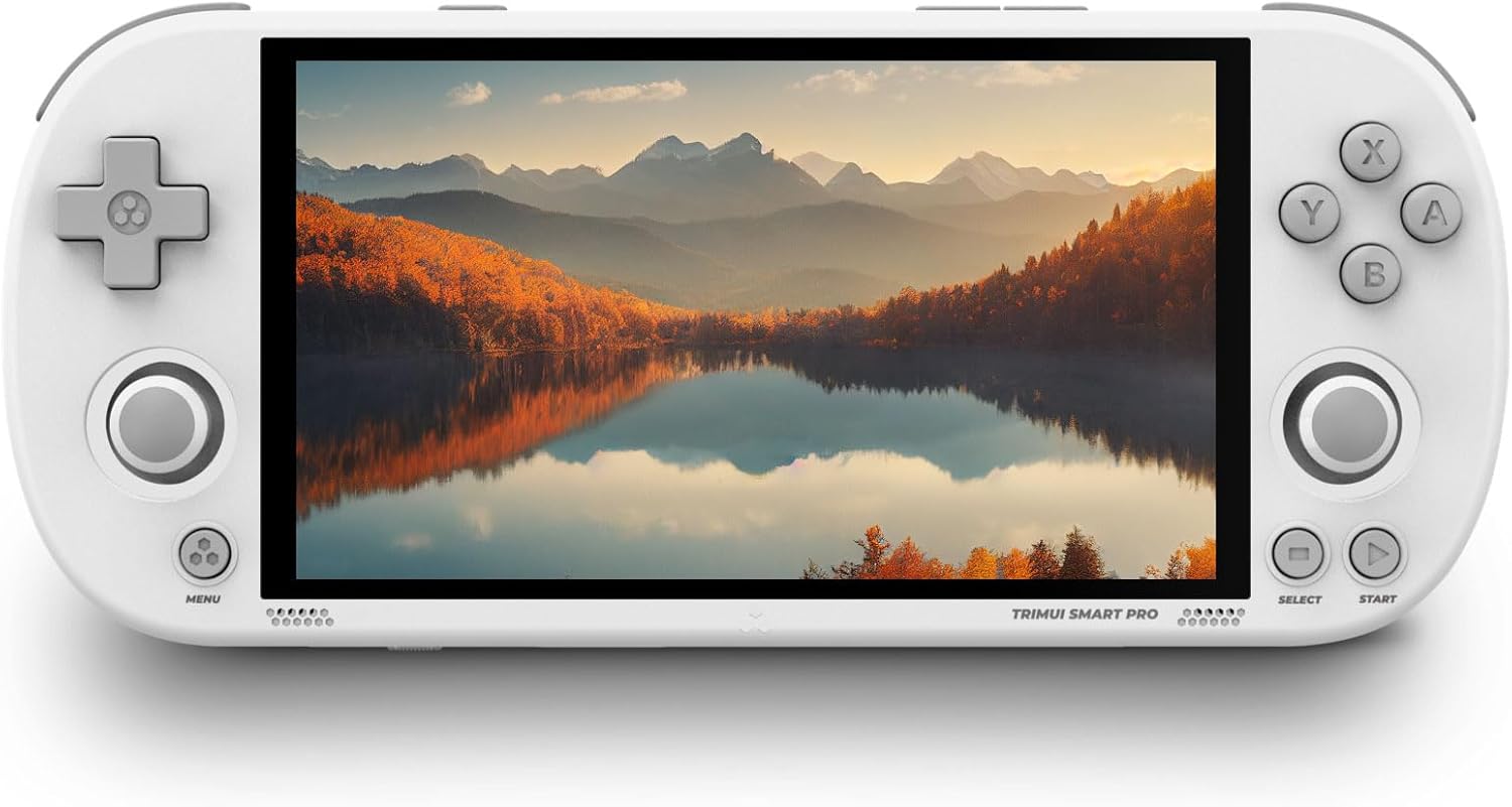 T𝗿𝗶𝗺𝘂𝗶 Smart Pro Retro Game Console 4.96-Inches 720x1280 IPS Screen Built-in 64G TF Card Video Gaming Consoles 5000mAh Lithium Battery Supports Multiple Simulators Casual Game Console(White)