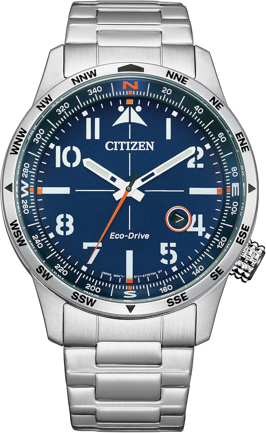 Citizen Men's Eco-Drive Weekender Avion, Silver-Tone Stainless Steel Bracelet Watch, 3 Hand, Date (Model: BM7550-52L)