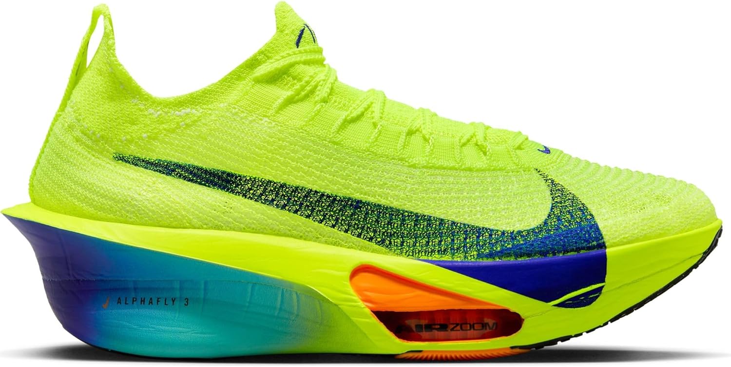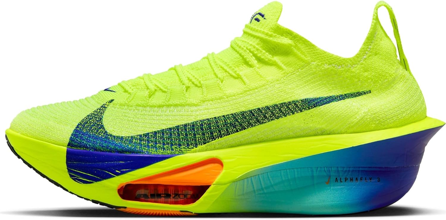 Engineered for marathon speed, the Alphafly 3 empowers you to surpass your limits. Three advanced technologies fuel your run: A double helping of Air Zoom units propels you into your next stride; a full-length carbon fiber plate effortlessly drives you forward; and a heel-to-toe ZoomX foam midsole maintains your freshness from start to finish. Time to outrun your old personal bests.