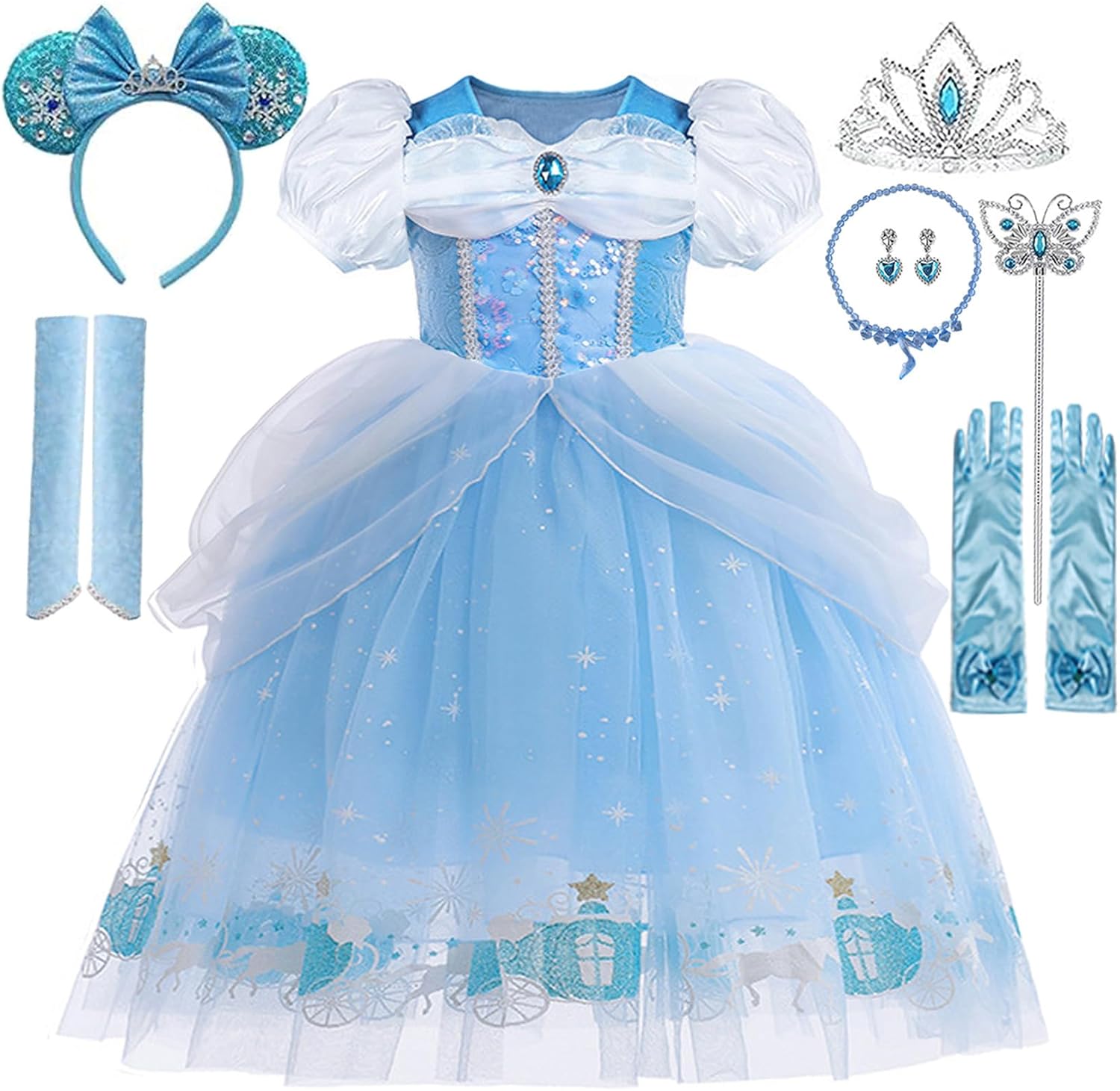 Princess Dresses for Girls Little Kids Blue Princess Costume Cosplay Outfit Birthday Halloween Prom Party Dress Up