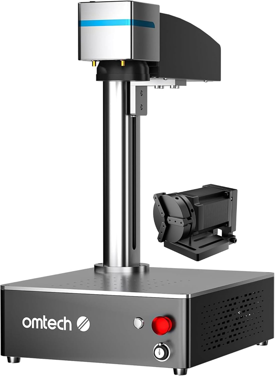 OMTech 30W MOPA Fiber Laser Engraver with Rotary Axis, 5.9"x5.9" Laser Metal Etching Machine for Color Metal Marking, Laser Marking Machine with JPT Source EZCad Galvo Lens