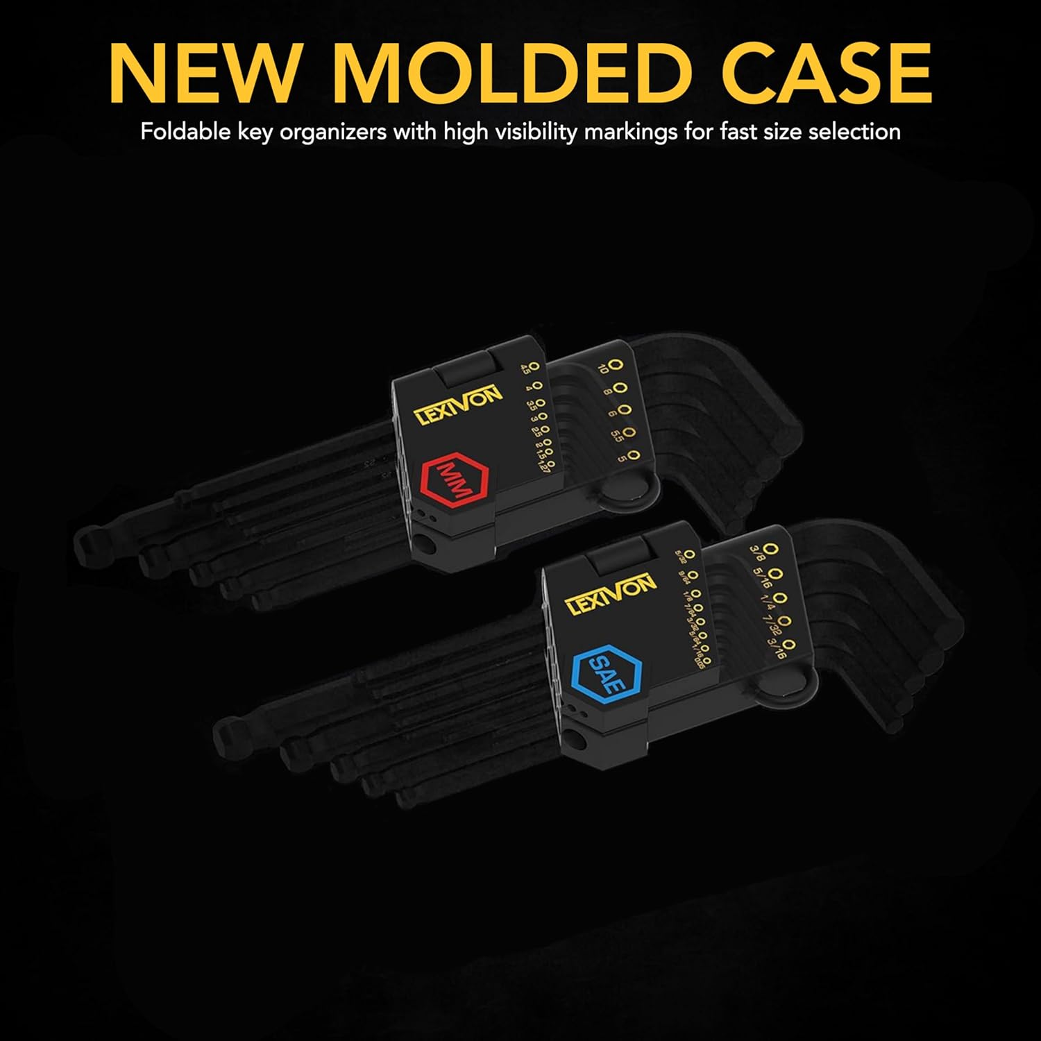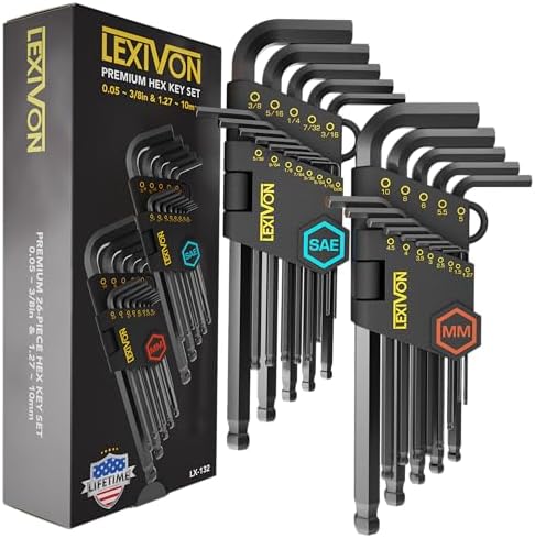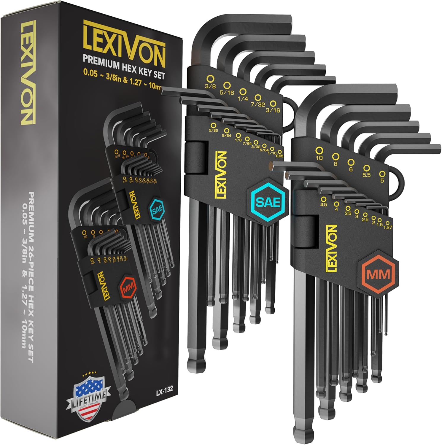 LEXIVON Allen Wrenches Sets, 26-Piece Premium Metric & SAE Hex Keys, L-Shaped Long Arm Ball End Design, Industrial-Grade S2 Alloy Steel (LX-132)