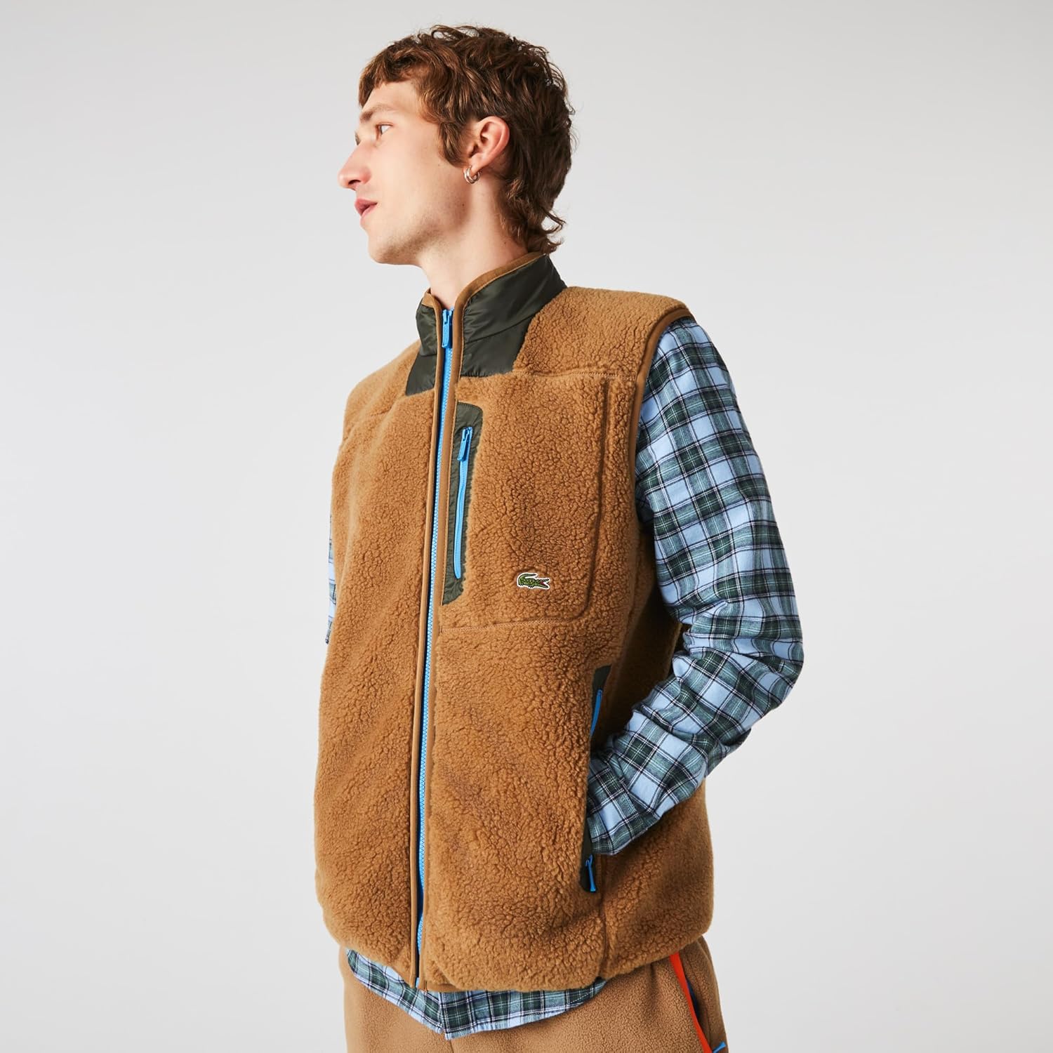Lacoste mens Men's Lacoste Sherpa Fleece Vest Jacket