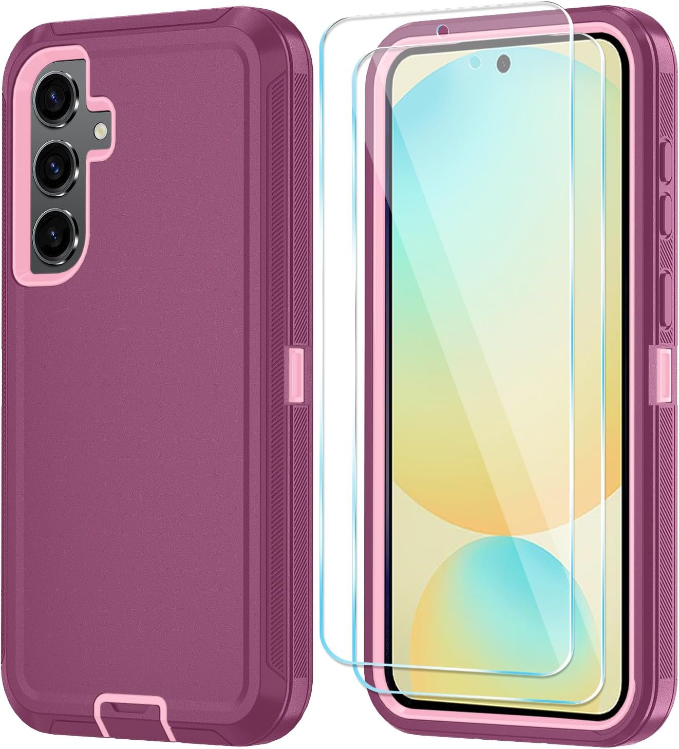 ONOLA Phone Case for Samsung Galaxy S24 FE Case with HD Screen Protector, Heavy Duty Shockproof & Dropproof 3-Layer Cover Phone Case for Galaxy S24 FE 6.7'',WineRed Pink