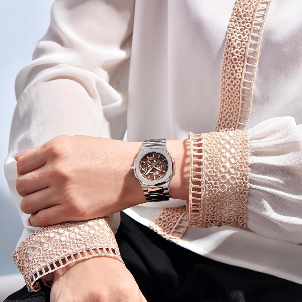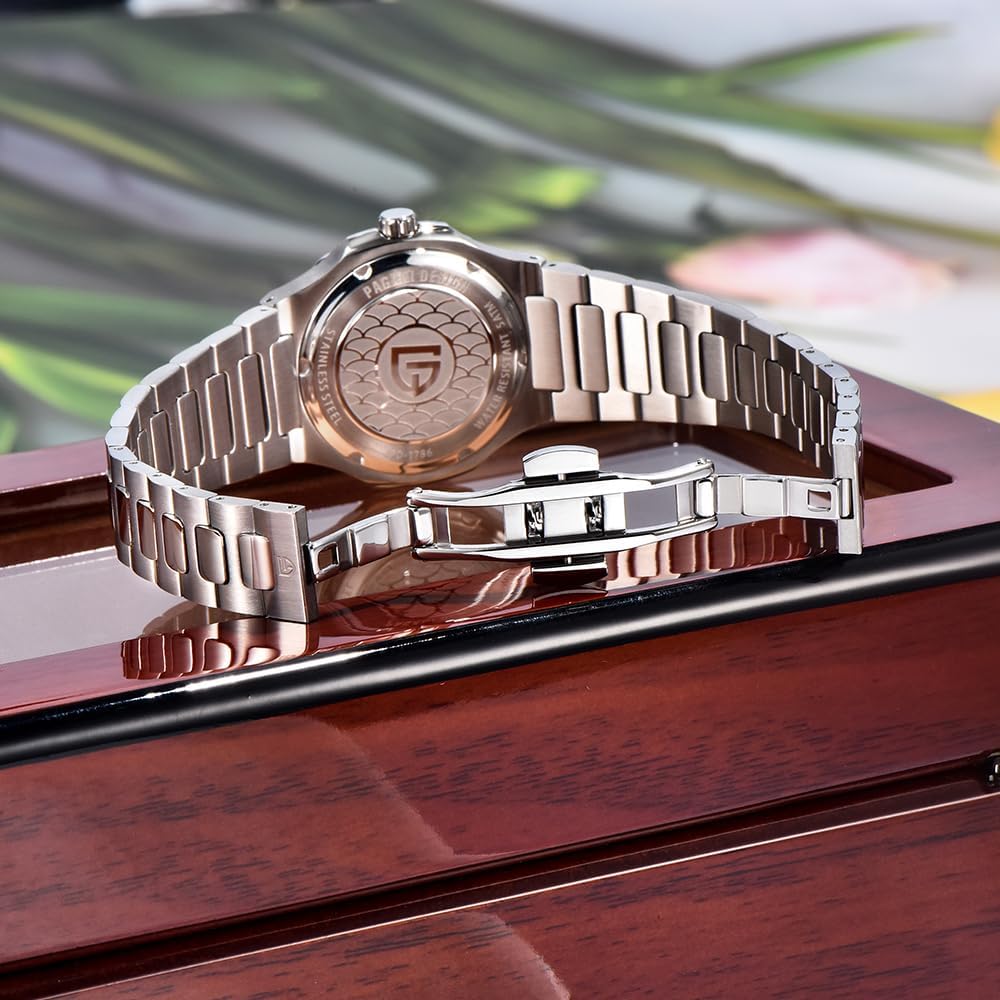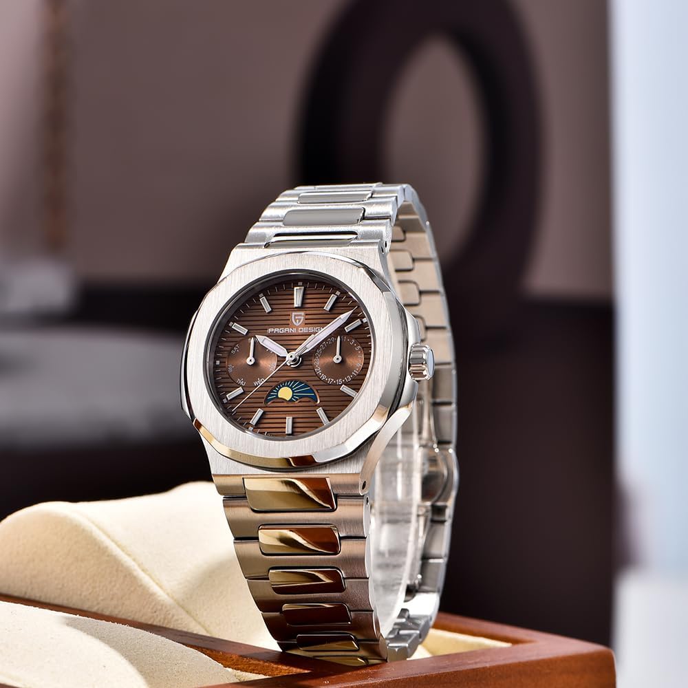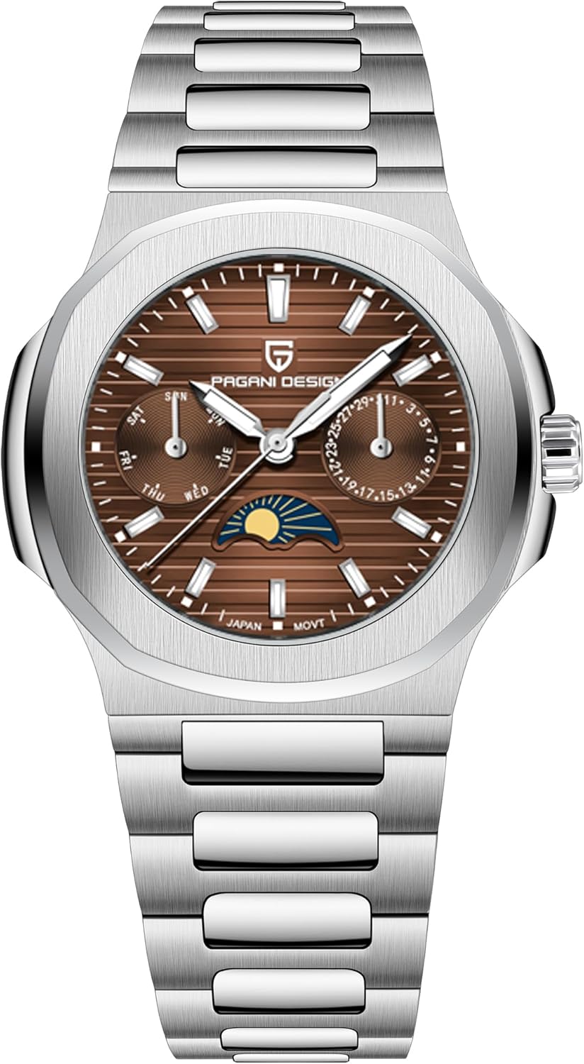HaiQin Pagani Design Luxury Women's Quartz Watch Multifunctional Chronograph Moon Phase VX3H Movement Full Stainless Steel Waterproof Luminous Elegant Lady Sport Wristwatch