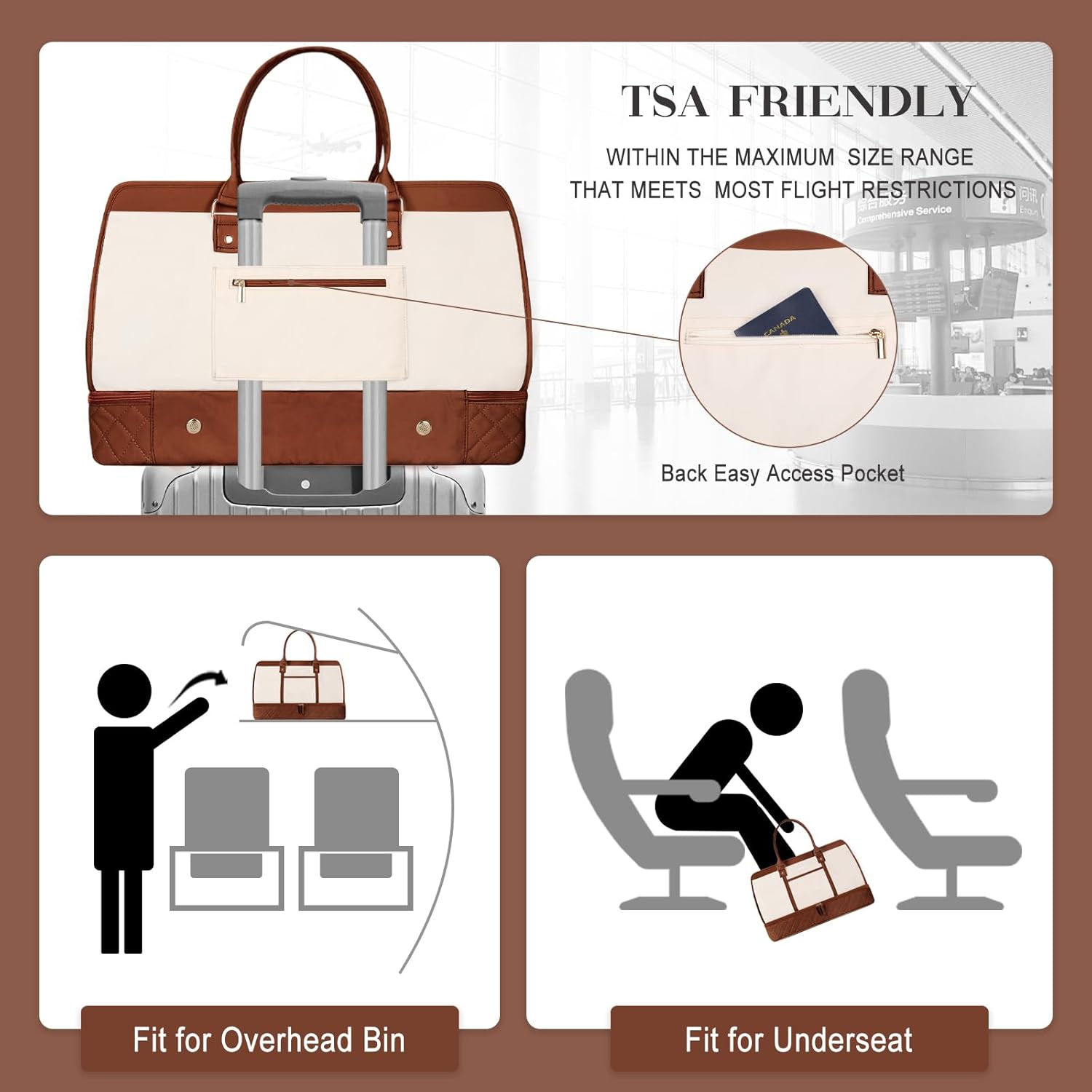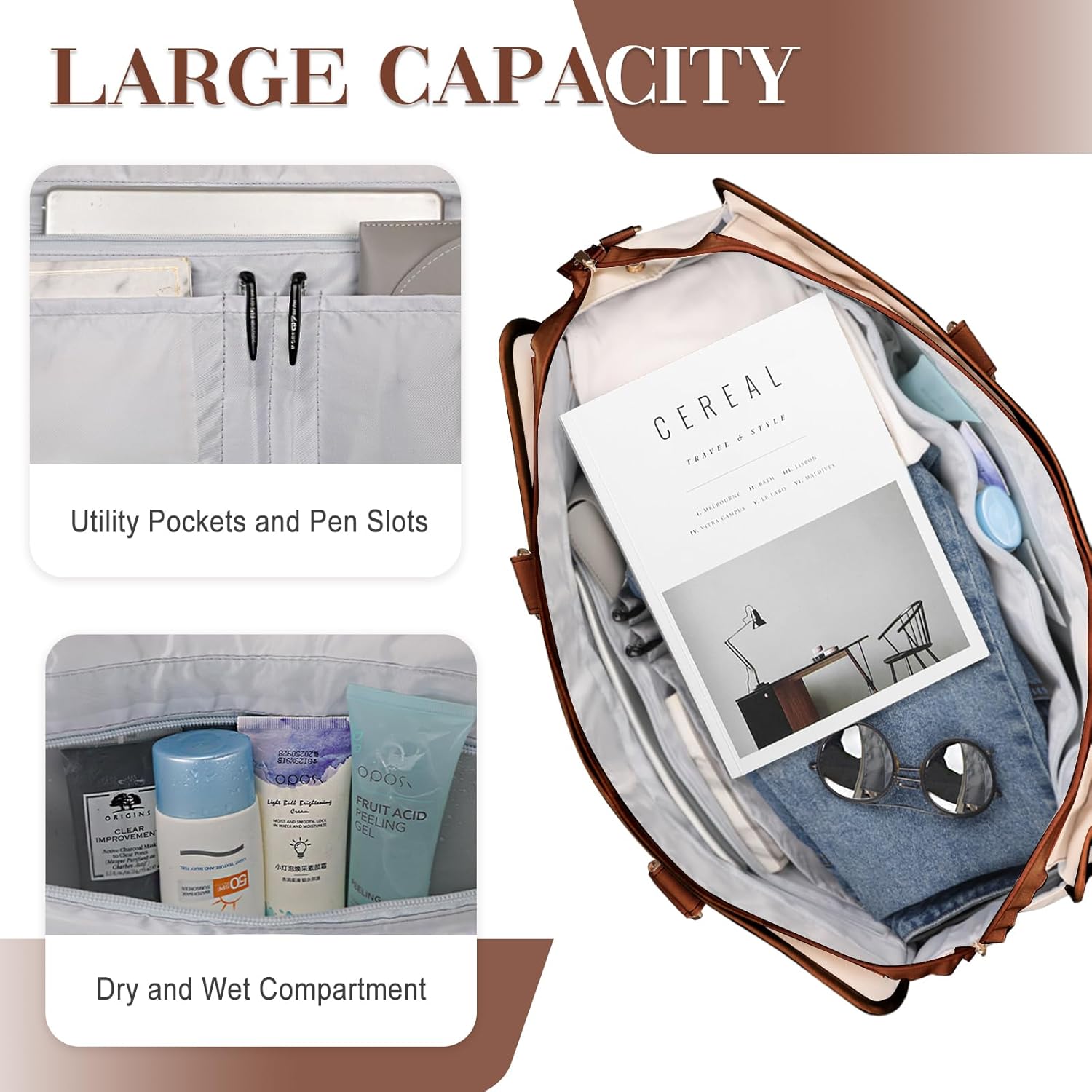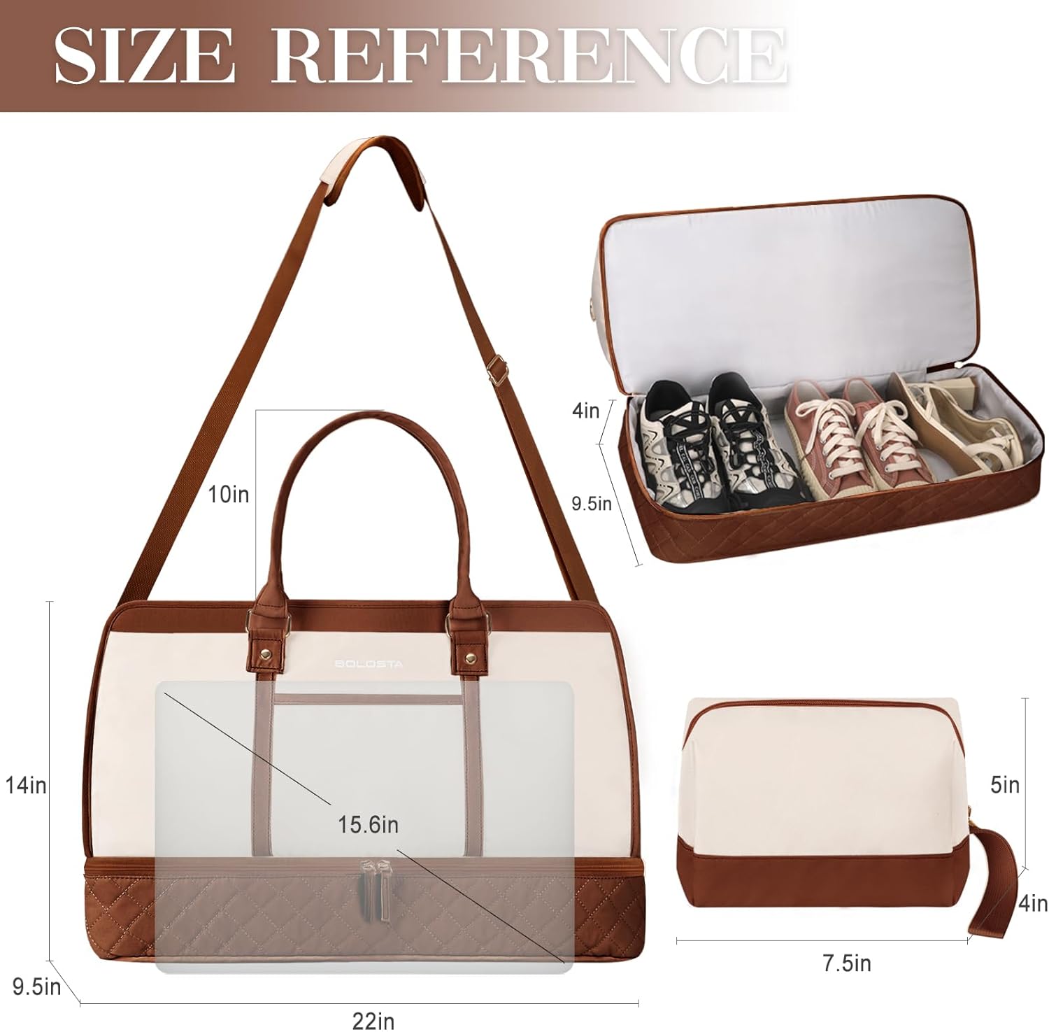 BOLOSTA Large Weekender Bags for Women with Shoe Compartment & Wet Pocket, Carry on Overnight Bags with Toiletry Bag, Personal Item Travel Duffle Tote Bag for Travel, Gym, Business, Brown