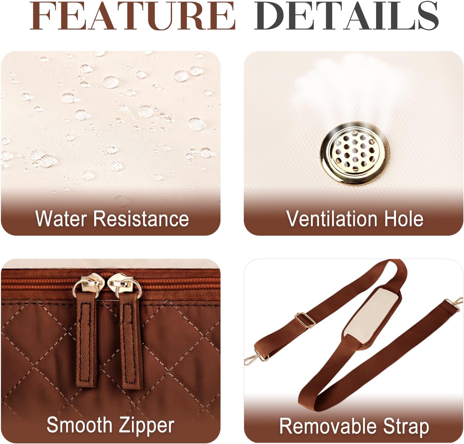 Separated Bottom Shoe Compartment with Vents: Size: 9.5 * 4 inch. Large enough to hold 2~3 pairs of shoes, including slippers, high heels, sneakers or other shoes that need to be replaced during travel or business trips.