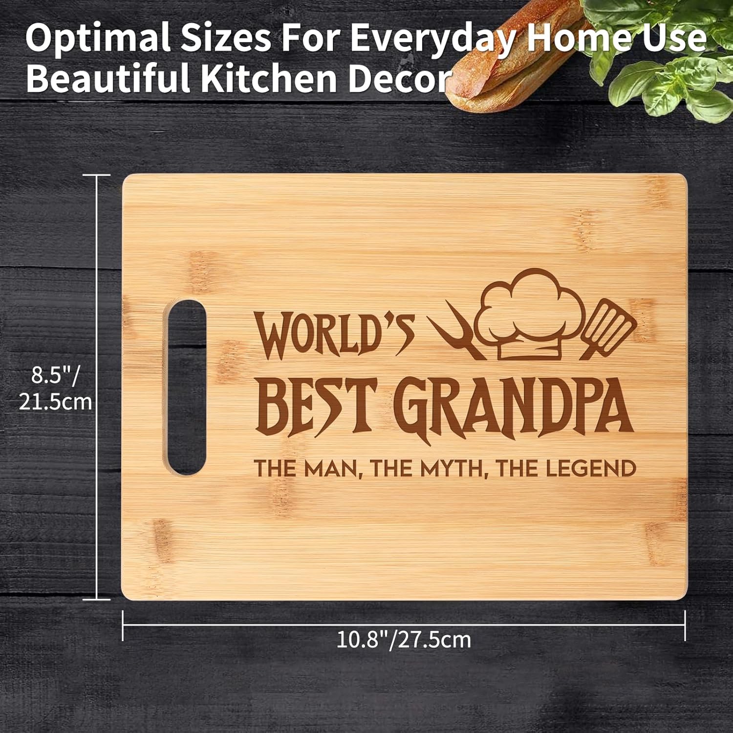 Perfect Size and Versatility-- Our grandfather birthday gifts, happy birthday grandpa, best gifts for grandfathers cutting board measures 8.5 "x10.8". Not just can be used to cut fruit, cheese, vegetables, bread, or as a deli board, our bamboo cutting boards are perfect as a souvenir to decorate any corner of the kitchen