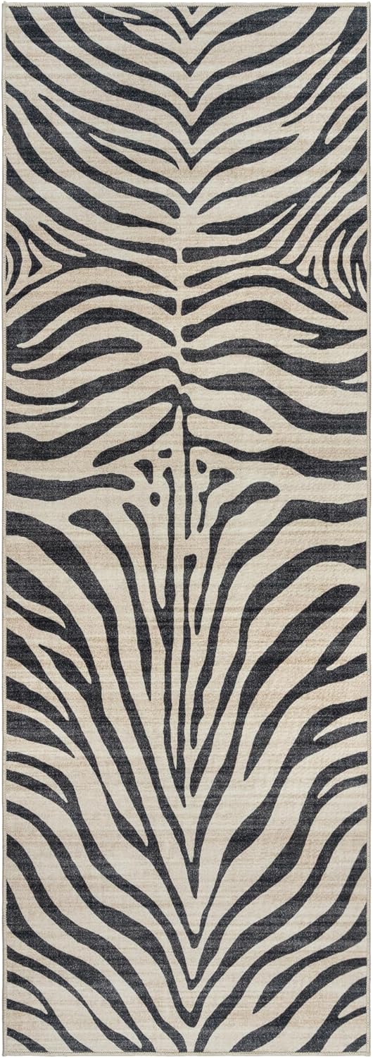 Gertmenian Indoor Boho Rug - 2x8 Runner, Non Slip, Super Strong, Ideal for High Traffic Areas in Entryway, Bedroom, Kitchen - Zebra, Black, White, 27730