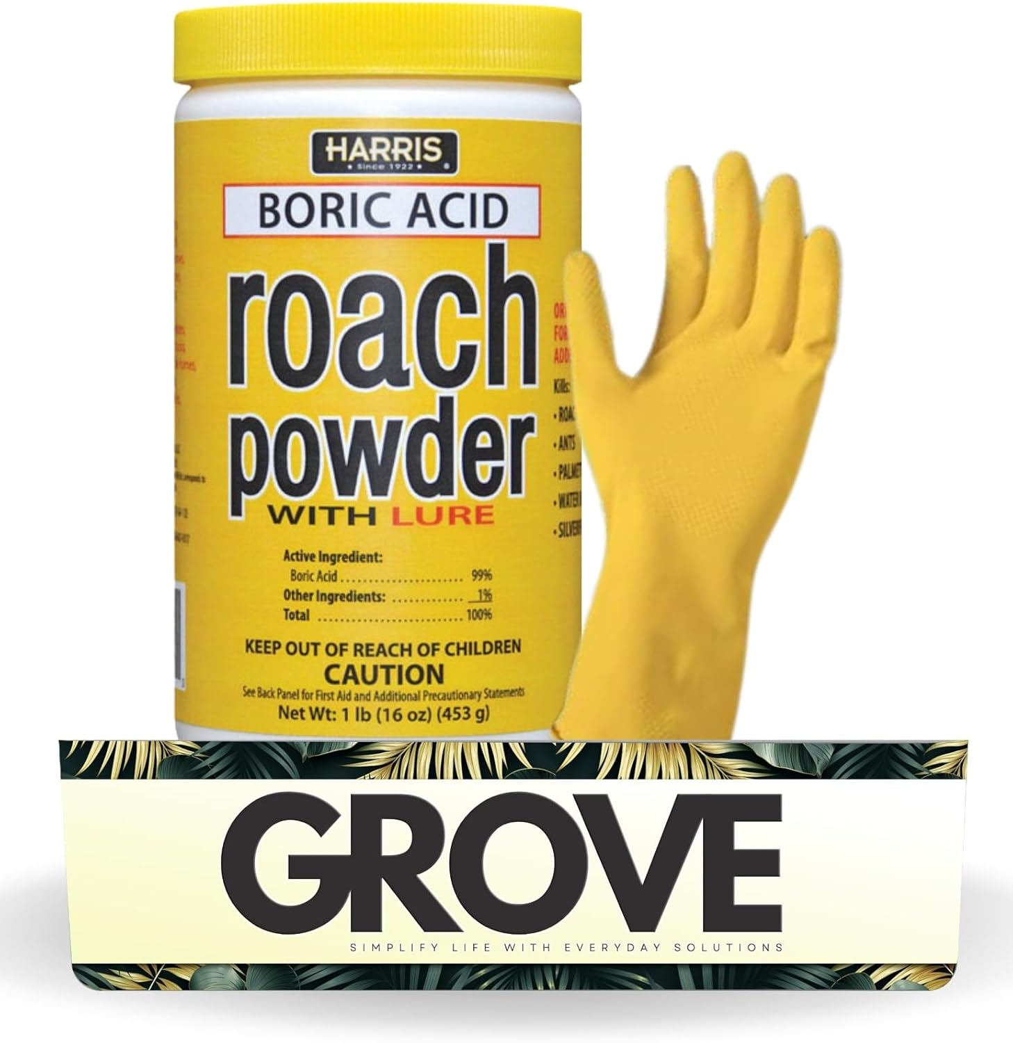 Unleash the ultimate defense against household pests with Harris Roach Killer Powder. This powerful formula, specifically designed as the number 1 roach killer, targets and eliminates Roaches, Palmetto Bugs, Waterbugs, and Silverfish with unmatched efficiency. Perfect for both indoor and outdoor use, our product ensures comprehensive protection where you need it most. Equipped with a convenient canister and applicator spoon, our cockroach powder killer makes it easy to reach into the deepest cracks and crevices, directly addressing roach killer indoor infestation issues. It's crafted to be safe around pets, making it an ideal cockroach killer safe for pets and a trustworthy choice for pet owners. Whether you're battling an infestation inside or preventing pests outdoors, our product serves as an effective ant killer and more. Formulated not just to kill but to attract, this boric acid roach killer powder includes a special lure that draws pests out from their hiding spots, ensuring that no area is left untreated. Safe, effective, and easy to use, this cockroach poison doubles as a pet safe roach killer indoor, providing peace of mind for health-conscious households. Say goodbye to pests with Harris, the proven roach proof powder and the best choice for maintaining a clean, roach-free environment. This bundle includes a canister of 16 oz Harris Roach Killer Powder and a Pair of Gloves, ensuring safe and mess-free application while protecting your hands, this set is perfect for tackling infestations in hard-to-reach areas, providing everything you need for efficient and hygienic pest control.