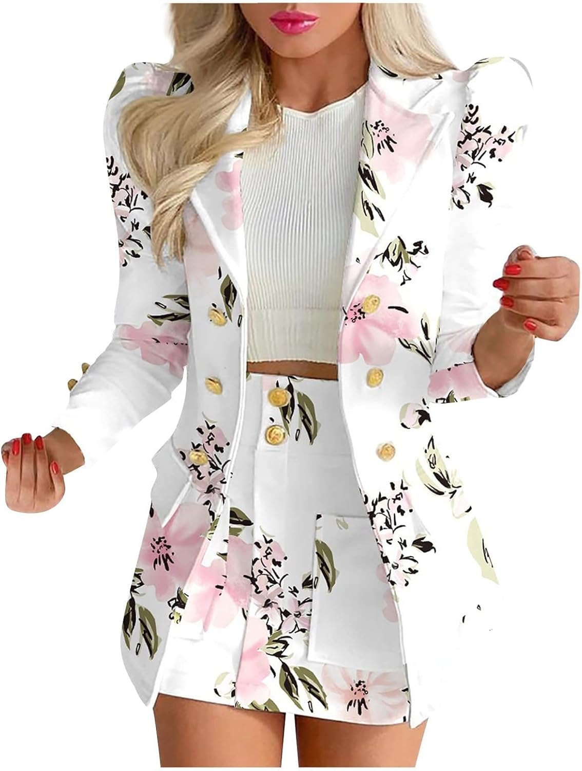 Blazer Sets Women 2 Piece Outfits Elegant Blazers Jackets Long Sleeve Cardigan Coat Pocket Shorts Skirt Suit