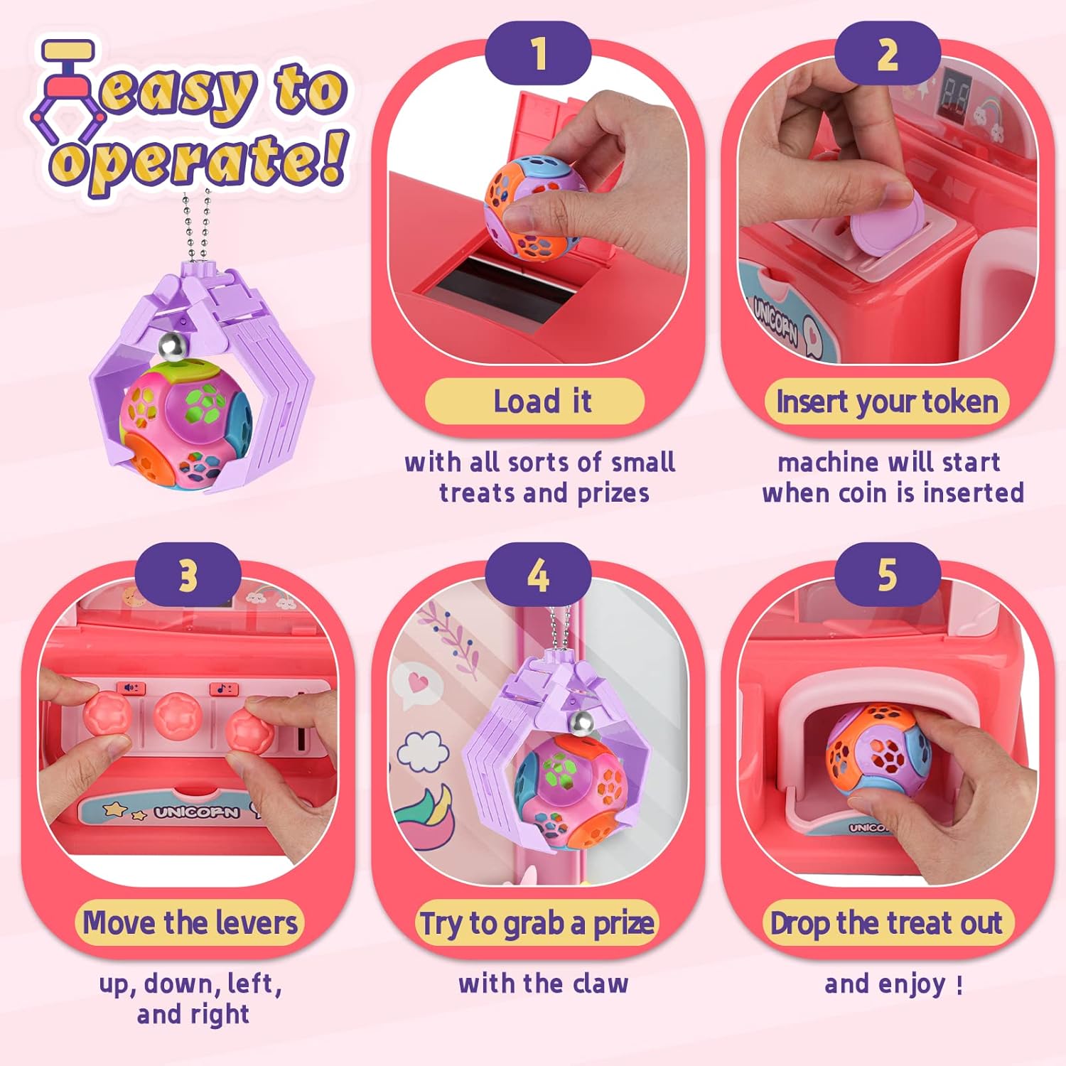 【Diseño Único】:Nuestra máquina de agarre de muñecas única y linda está hecha de plástico ABS seguro, plástico ABS seguro, máquina de juego de garras electrónica sin bordes ni rebabas afilados. Gran máquina de garras para niñas, construida para soportar innumerables aventuras de agarre.