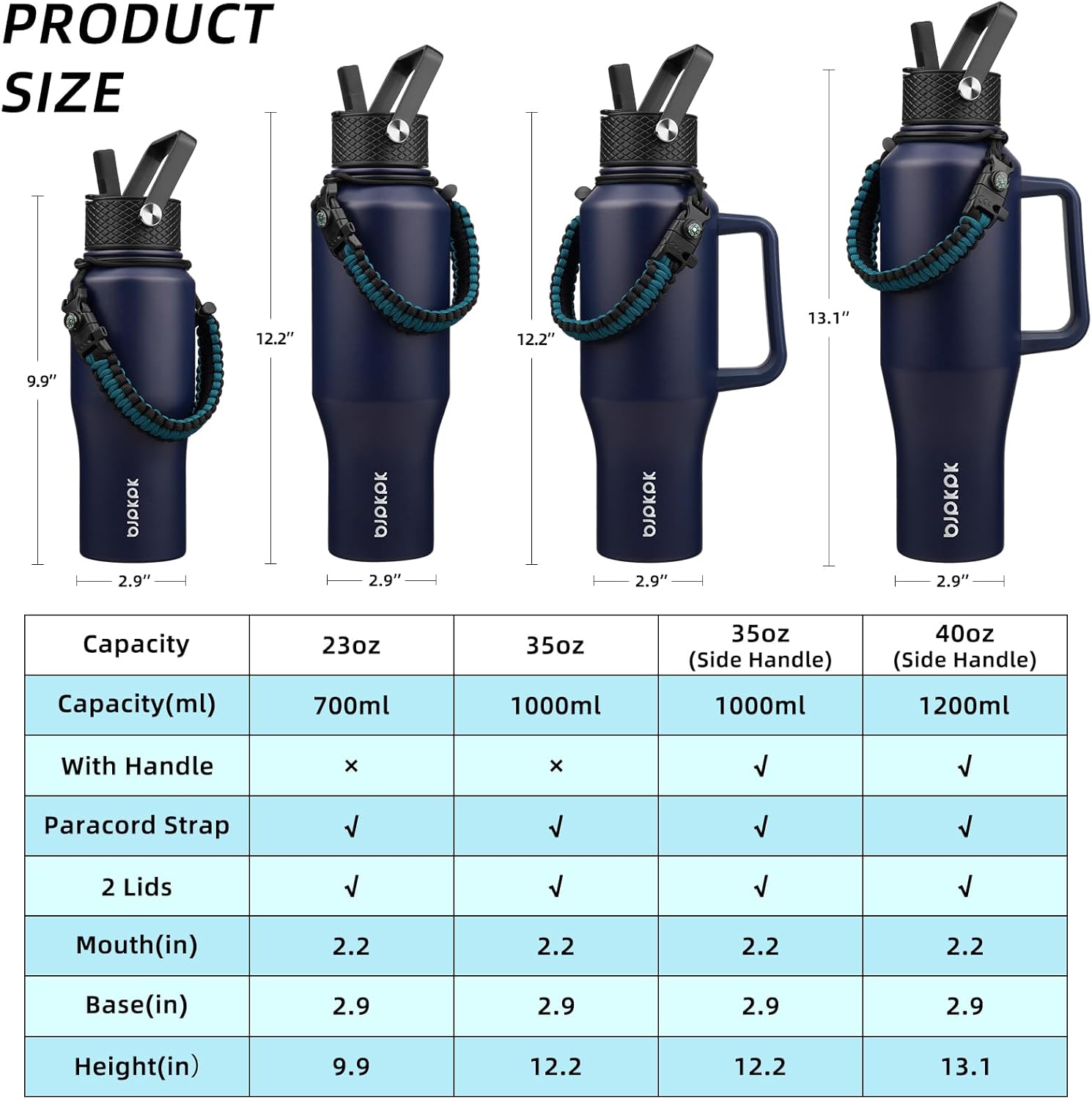 BJPKPK Insulated Water Bottles with Straw Lid, 35oz Metal Water Bottle with 2 lids & Paracord Strap, Double Wall Stainless Steel Tumbler with Handle, Reusable Cups, Mugs, Thermo, Navy Blue