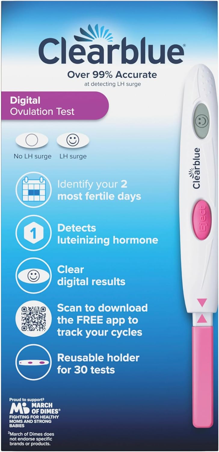 DIGITAL OVULATION TEST KIT: Includes one 1 digital reader and 30 Clearblue Digital Home Ovulation Test sticks to identify your 2 most fertile days. Phone not included.