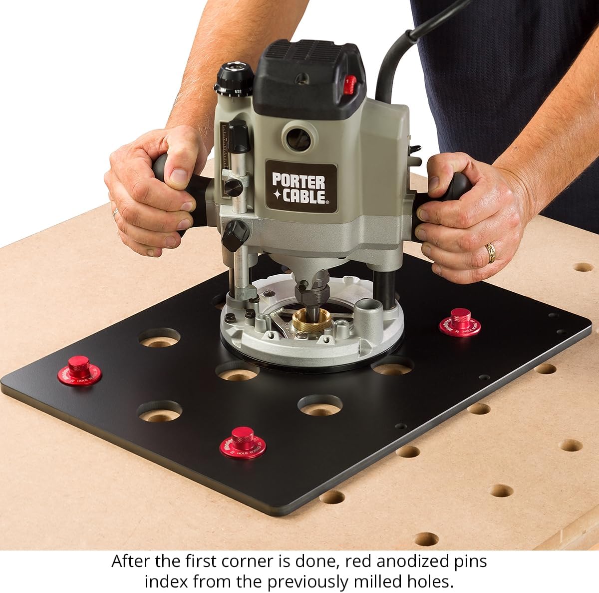 Woodpeckers Hole Boring Jig, Make Your Own Gridwork Table Top, USA Made, Includes Template, 3/4" & 20MM Pins & Router Bushings - HBJ-19