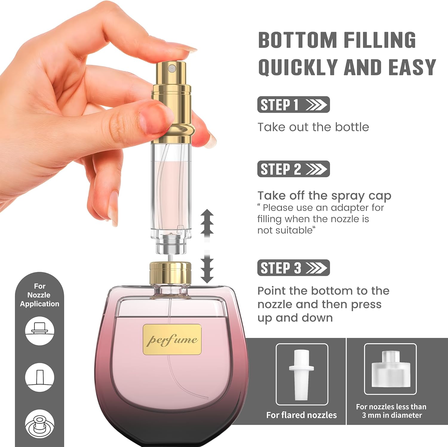 Fine Mist: Equipped with an advanced 0.02mm nano nozzle, this travel size perfume refill bottle provides a super fine, even mist, saving you 40% of your perfume