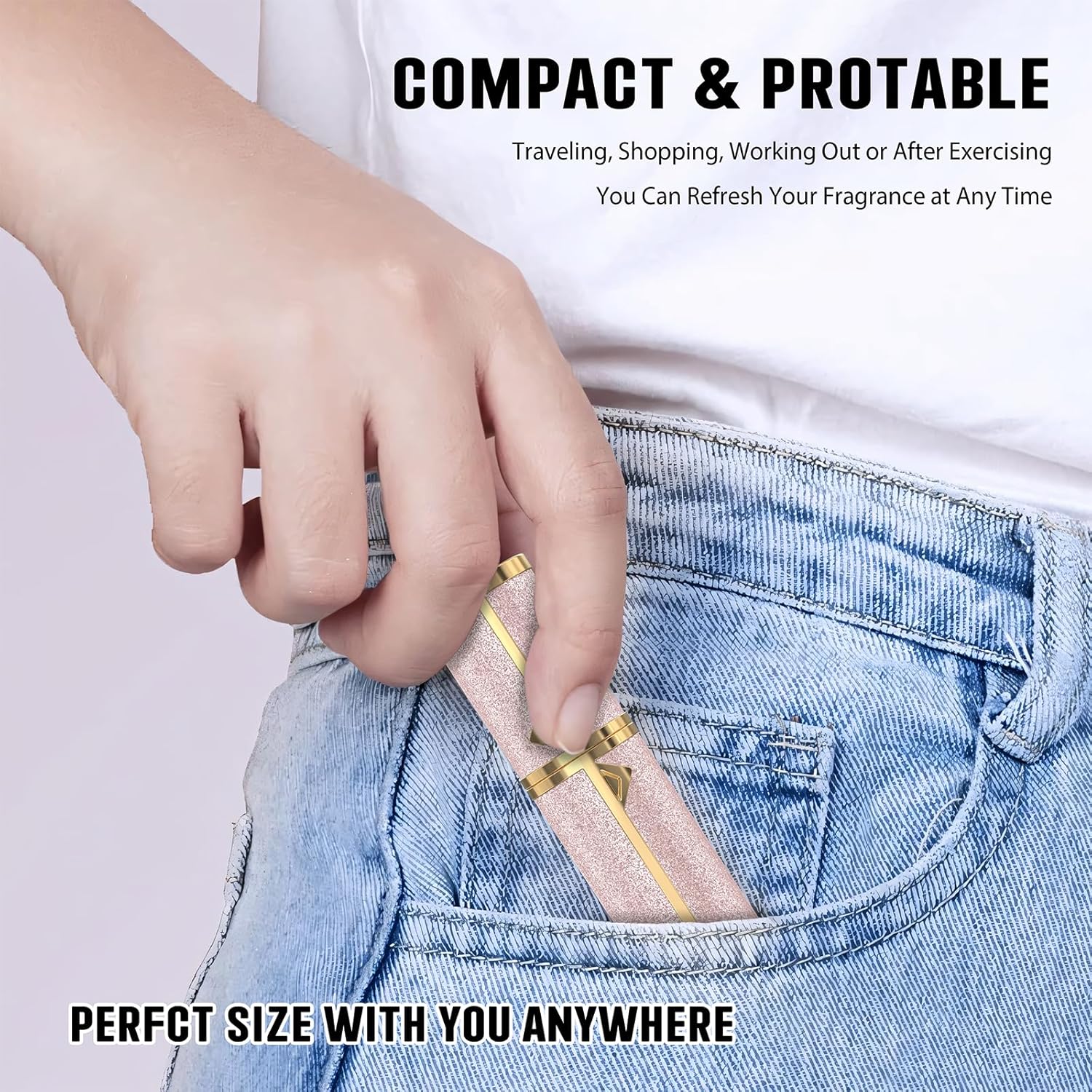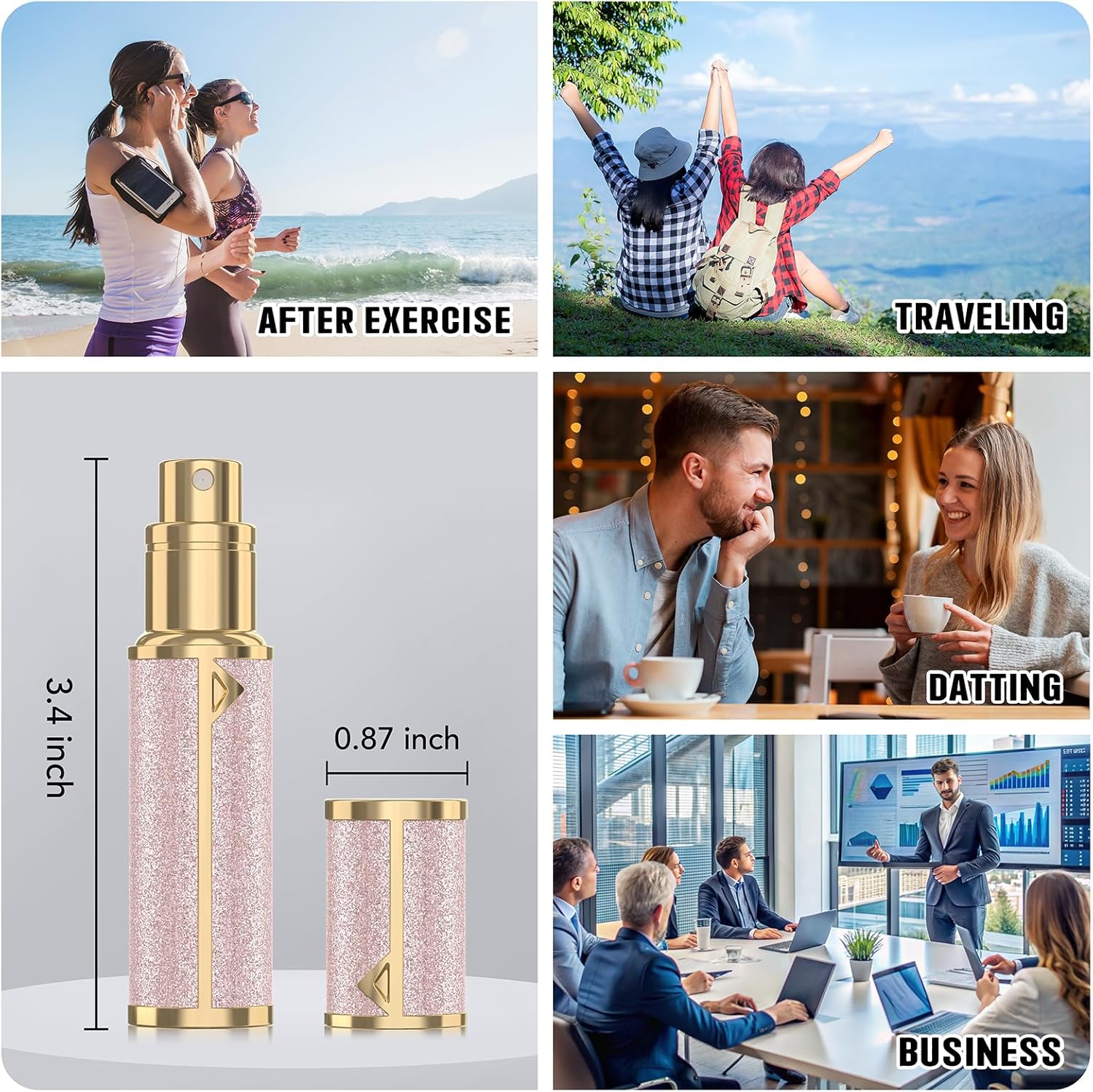 Premium Quality: This small perfume spray bottle is made of glitter faux leather and gold-plated metal, elegant and stylish design for both men and women, great gifts for the scent lovers